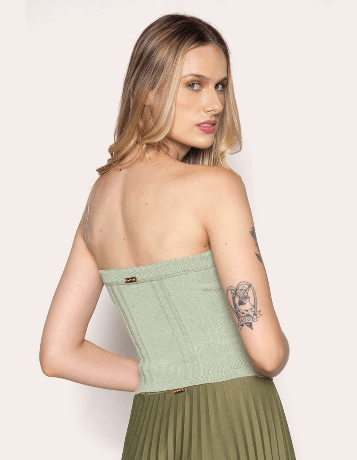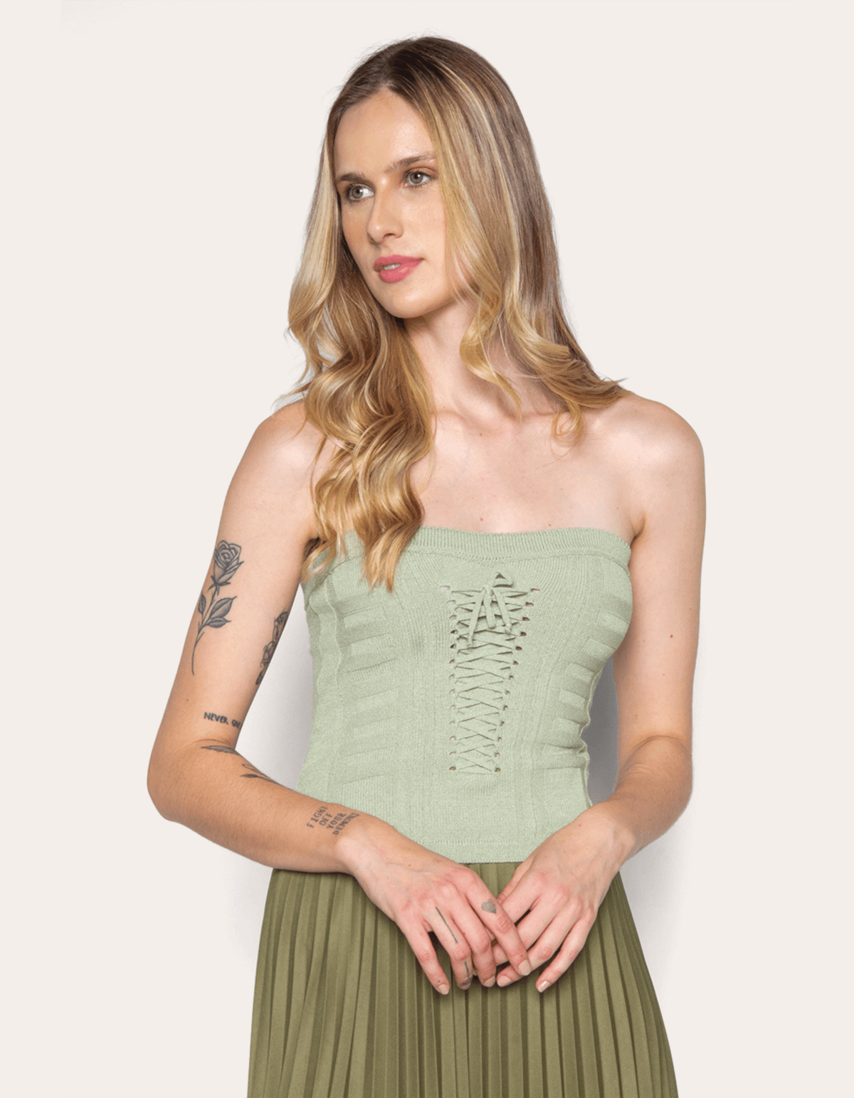 Blusa em tricot, modelagem cropped, tomara que caia corselet com amarração frontal que valoriza a peça. modelo perfeito para valorizar sua silhueta.