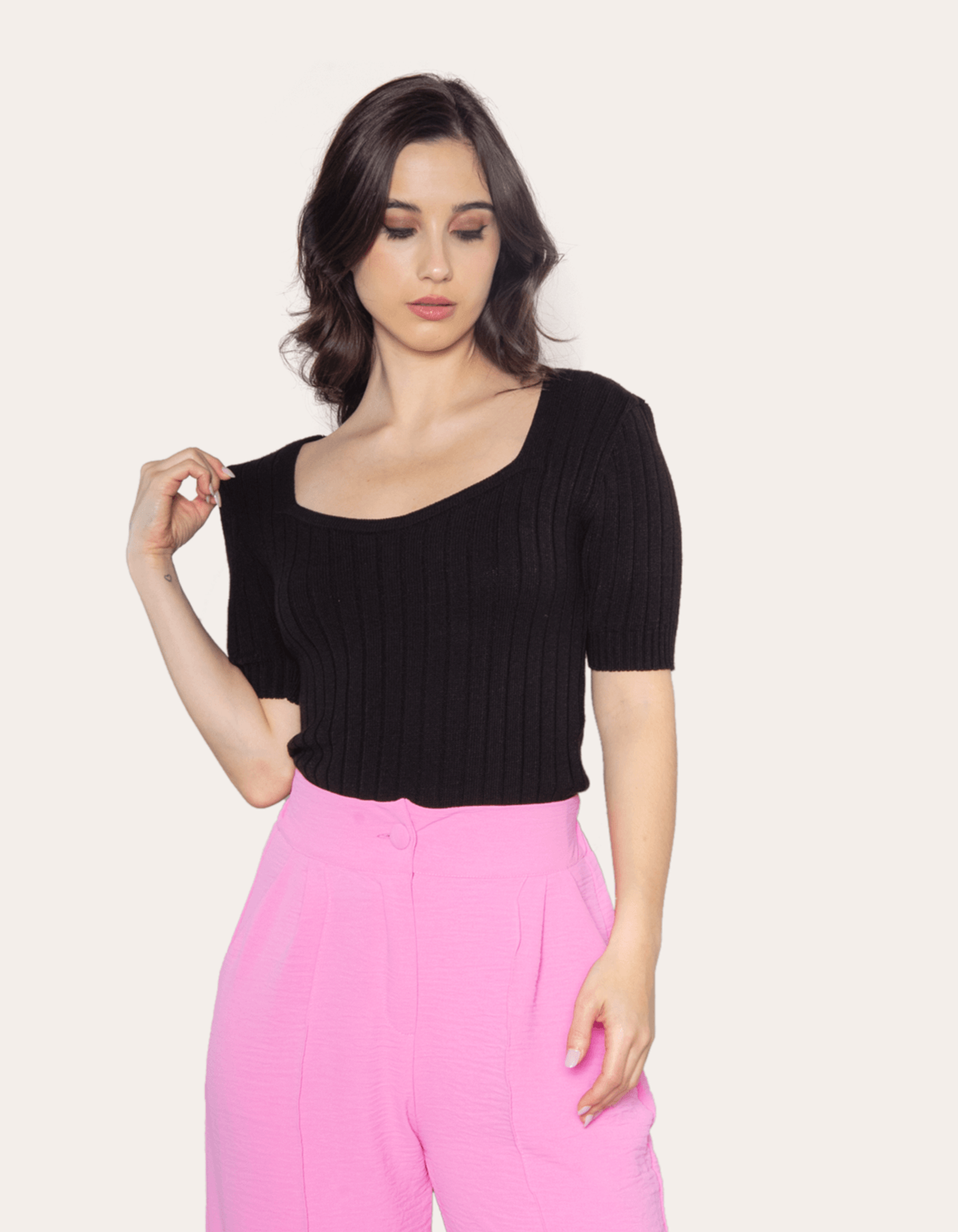 Blusa cropped tricot decote quadrado