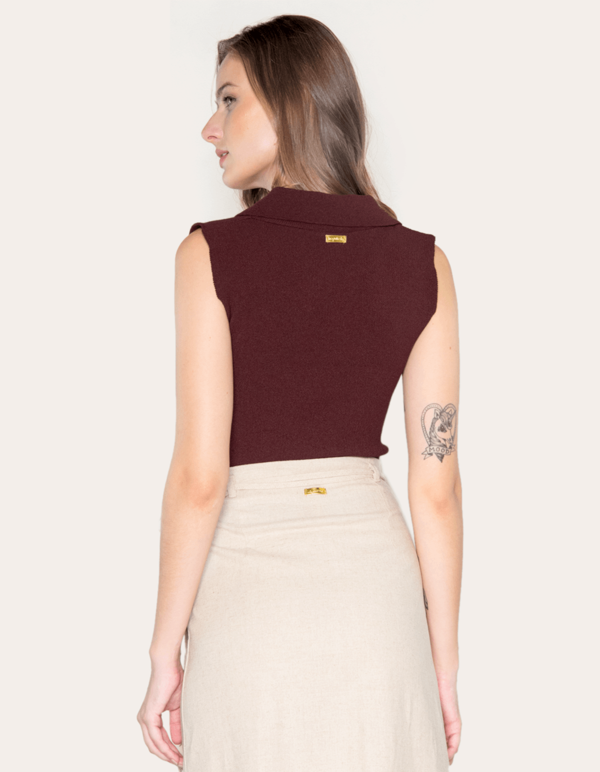 Feita de tricot, a peça possui gola polo, é cavada e tem ótimo caimento . combine com uma calça reta de alfaiataria e arrase!