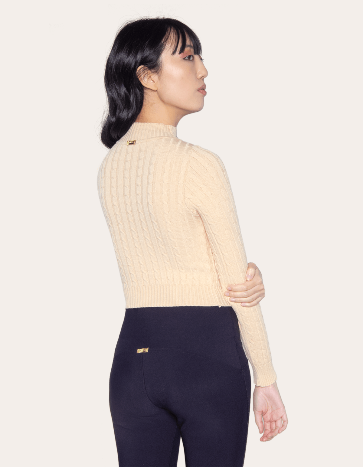 Blusa cropped tricot manga longa corrente