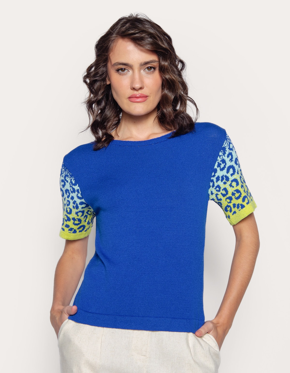Apresentamos uma blusa cropped de tricot com manga curta, que exibe um desenho de estampa de oncinha, inspirada no novo uniforme da seleção brasileira. essa peça da coleção lucy in the sky une estilo e tendência, trazendo um toque de moda contemporânea. a estampa de oncinha confere um padrão animal print à blusa, tornando-a marcante e estilosa. versátil, a peça pode ser combinada de várias formas, permitindo composições variadas. seja para eventos esportivos ou ocasiões casuais, essa blusa proporciona um visual moderno, vibrante e cheio de personalidade, expressando estilo e apoio à seleção.