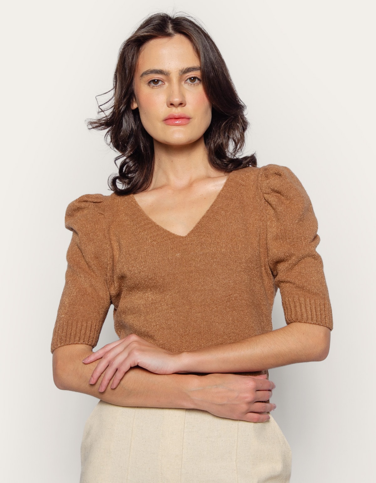 Blusa cropped tricot manga princesa, decote v. clássica e atemporal, ela vai te acompanhar em diversos momentos!