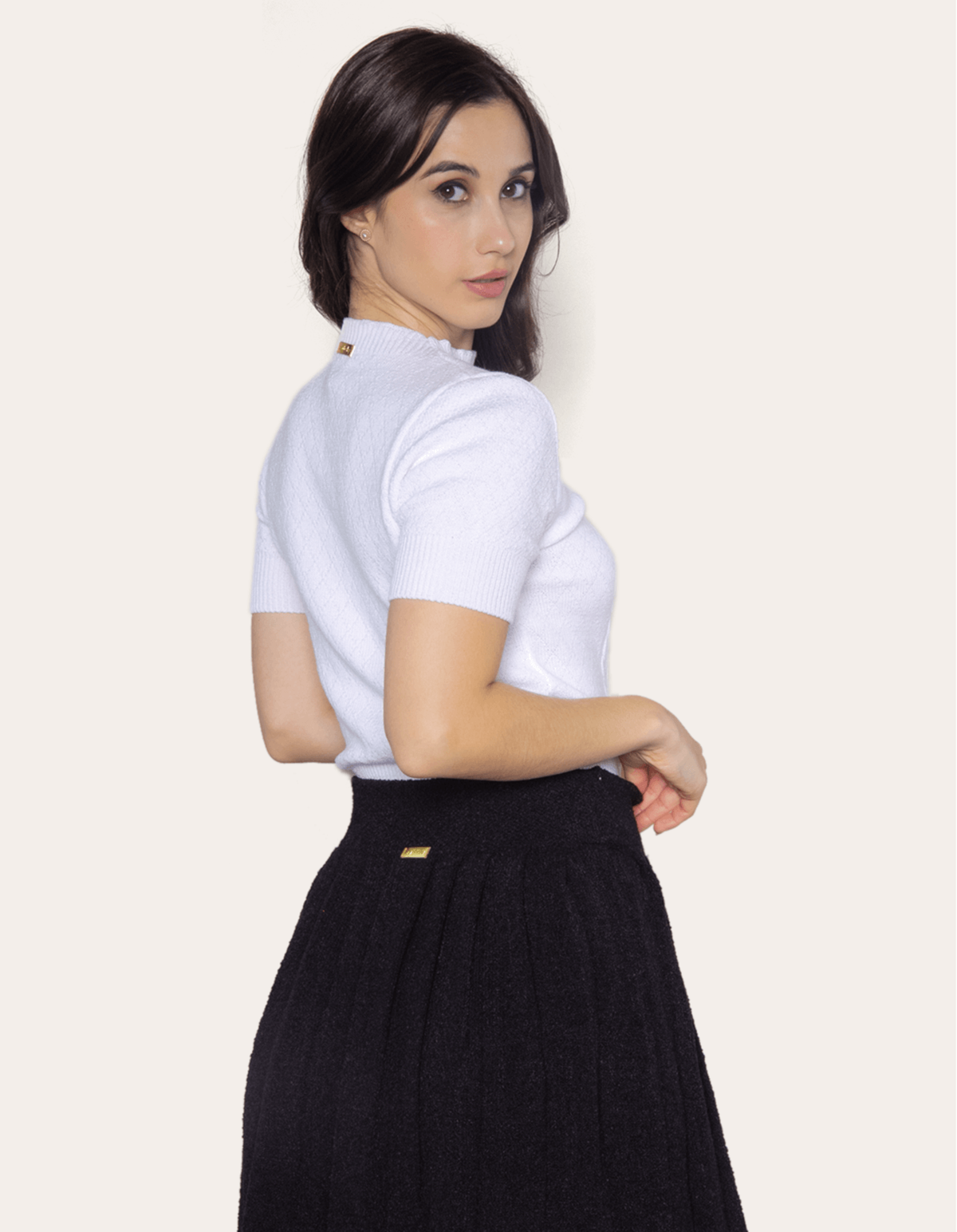 Blusa cropped tricot manga curta, possui golinha média e detalhe trançado na frente. o auge fashion da peça fica todo por conta de suas texturas em relevo. aposte nesse modelo que vloriza a silhueta, é delicada e super versátil para ser usada com saia, calça ou shorts.