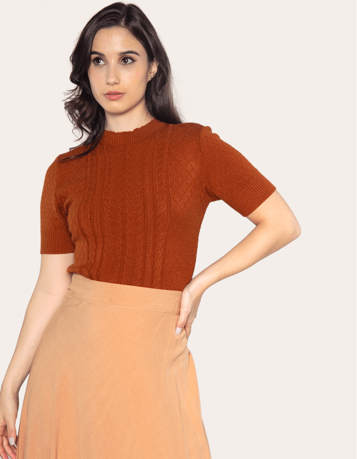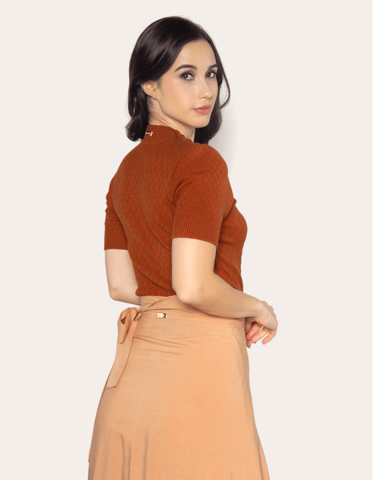 Blusa cropped tricot manga curta, possui golinha média e detalhe trançado na frente. o auge fashion da peça fica todo por conta de suas texturas em relevo. aposte nesse modelo que vloriza a silhueta, é delicada e super versátil para ser usada com saia, calça ou shorts.
