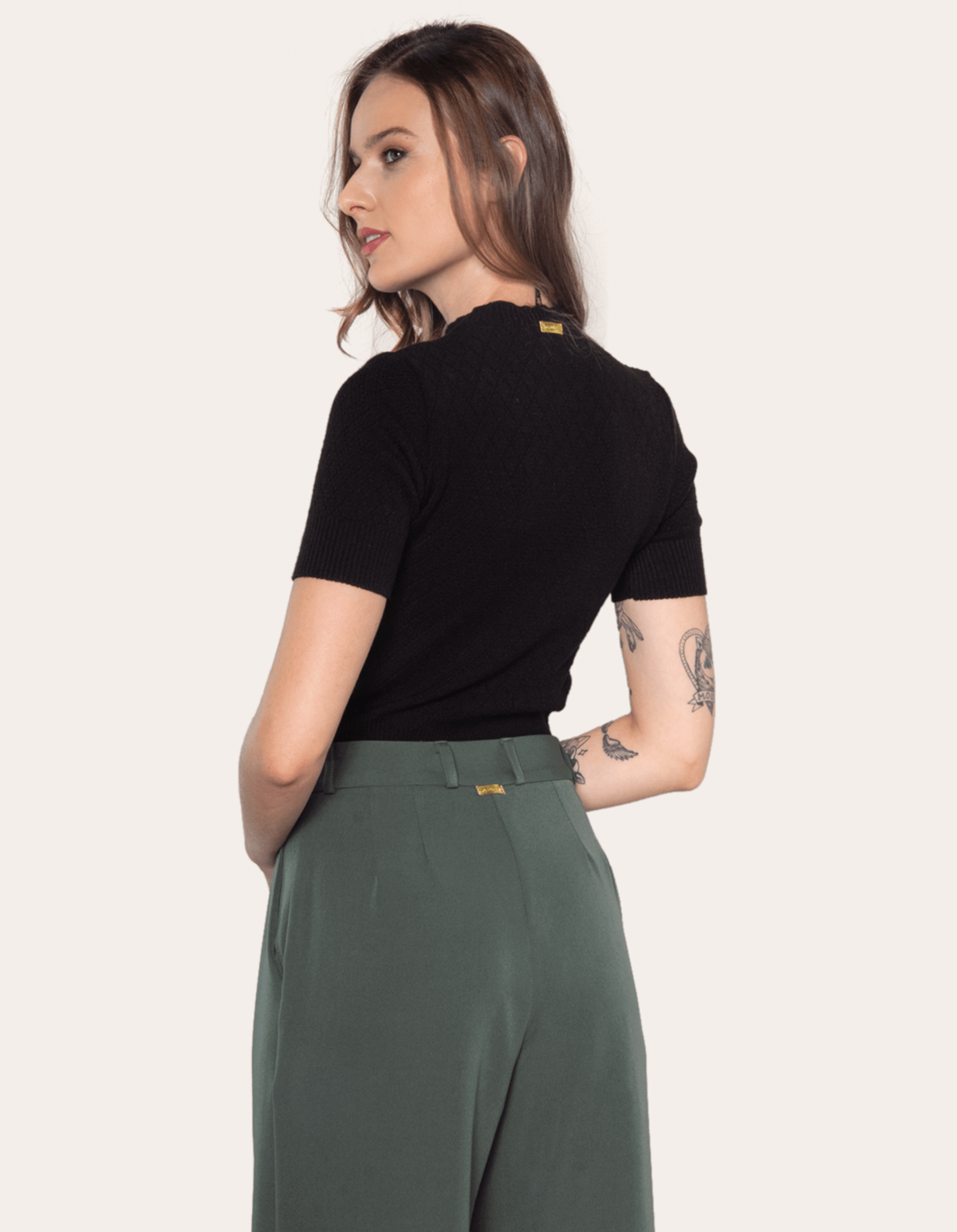 Blusa cropped tricot manga curta, possui golinha média e detalhe trançado na frente. o auge fashion da peça fica todo por conta de suas texturas em relevo. aposte nesse modelo que vloriza a silhueta, é delicada e super versátil para ser usada com saia, calça ou shorts.