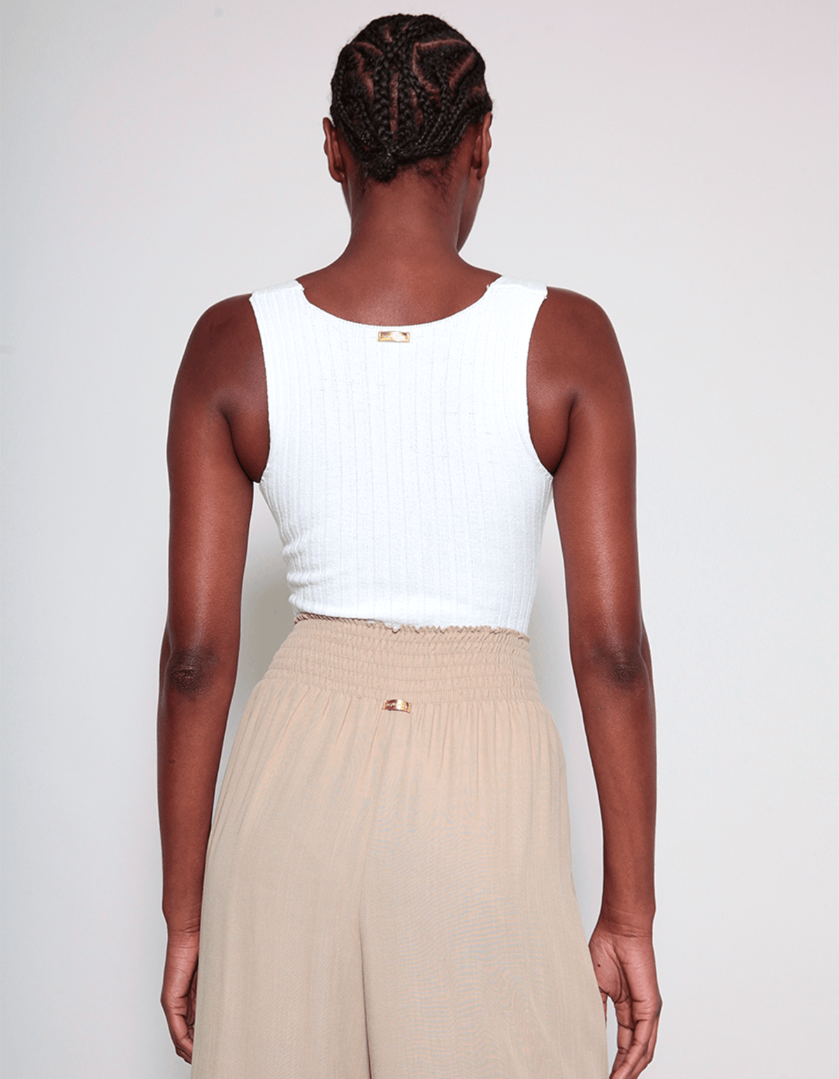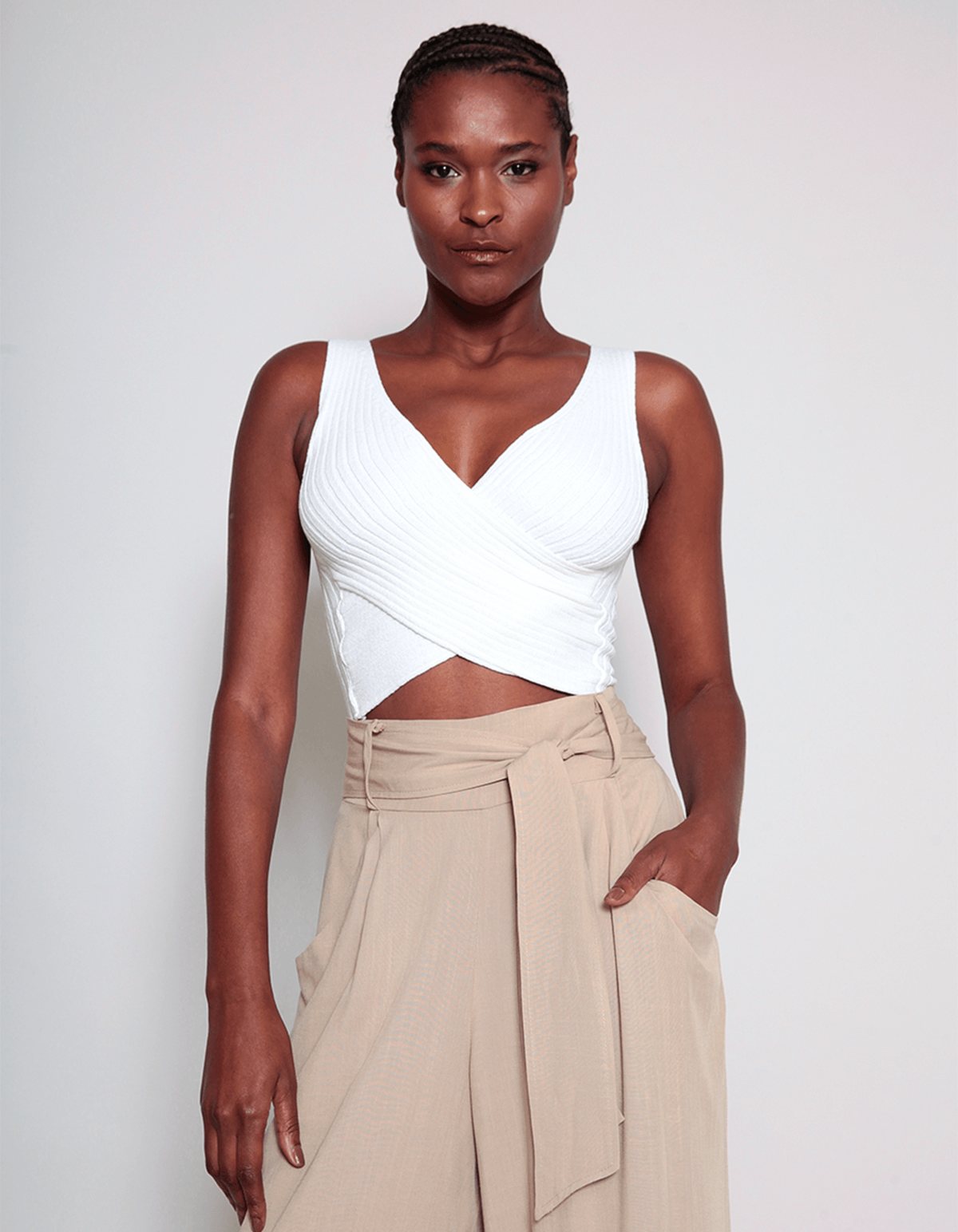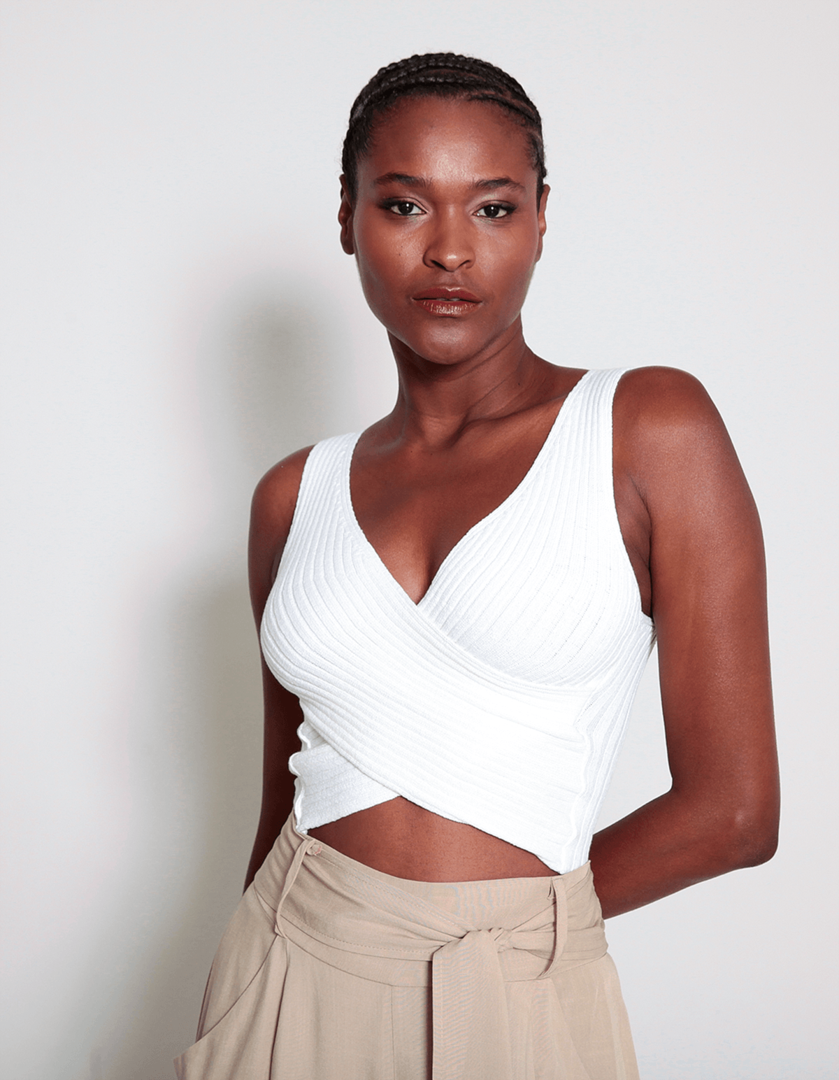 Uma peça que toda mulher tem que ter no closet nesse verão. nosso top em tricot tem modelagem transpassada, comprimento cropped e alças largas. muito versátil!
