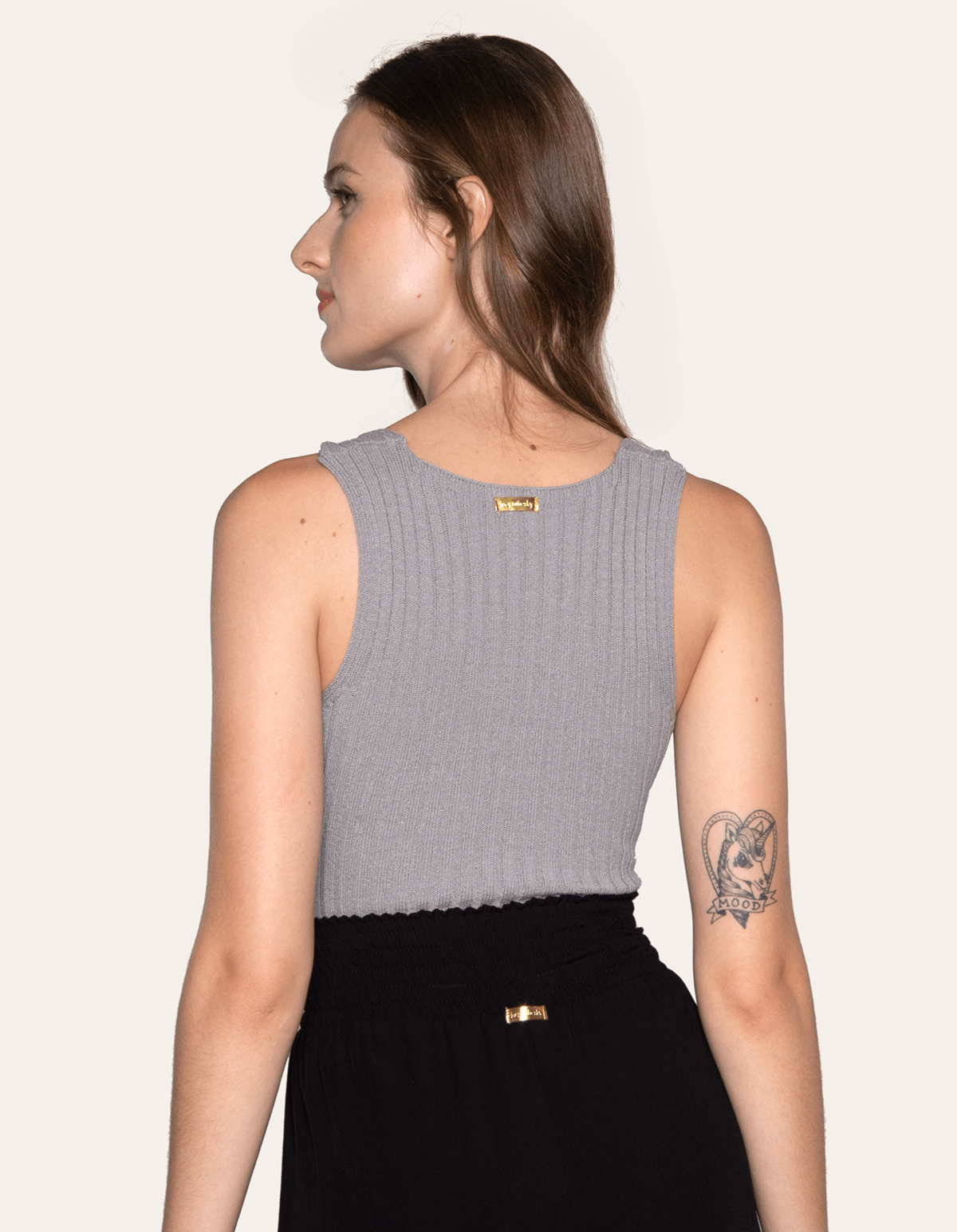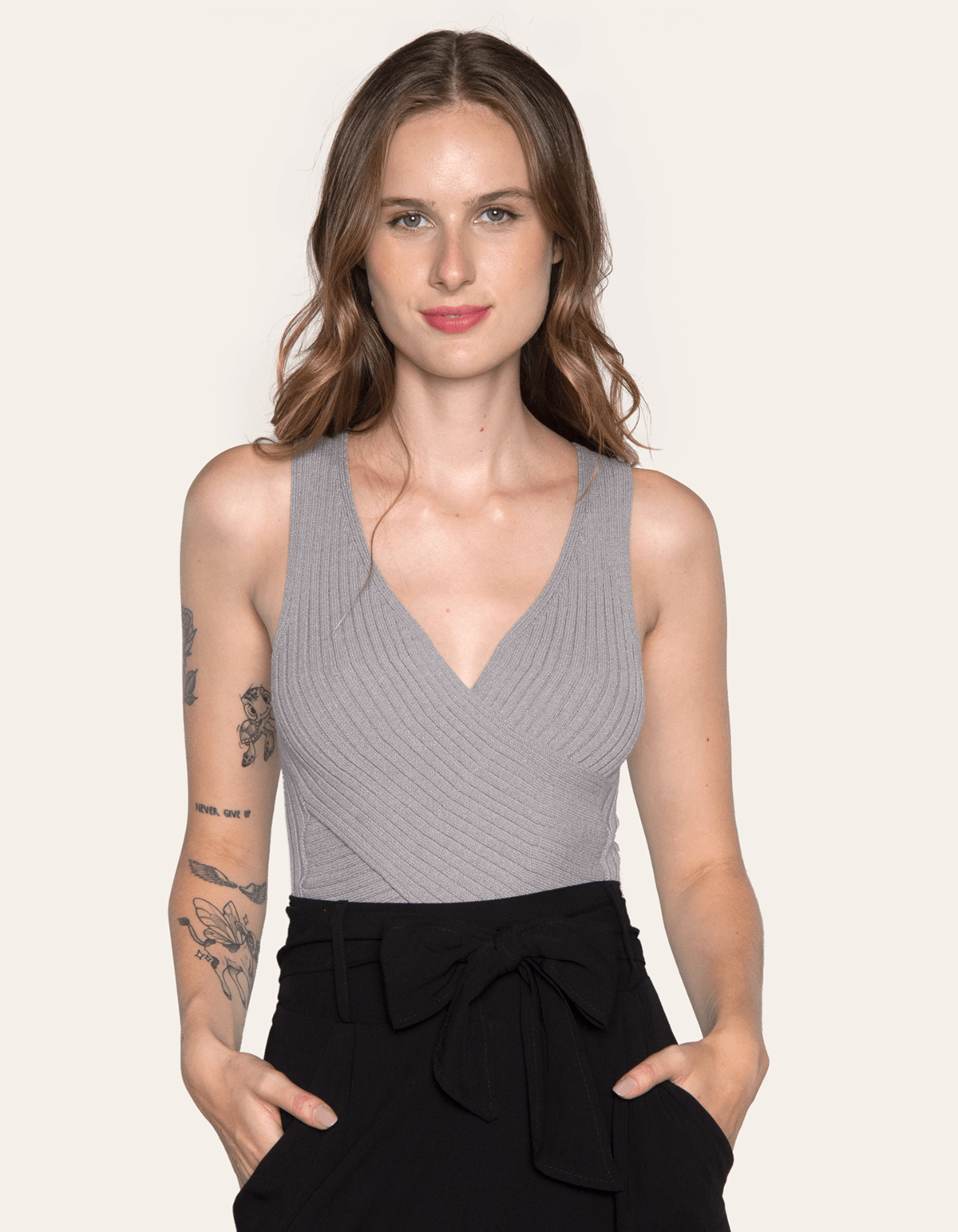 Uma peça que toda mulher tem que ter no closet nesse verão. nosso top em tricot tem modelagem transpassada, comprimento cropped e alças largas. muito versátil!