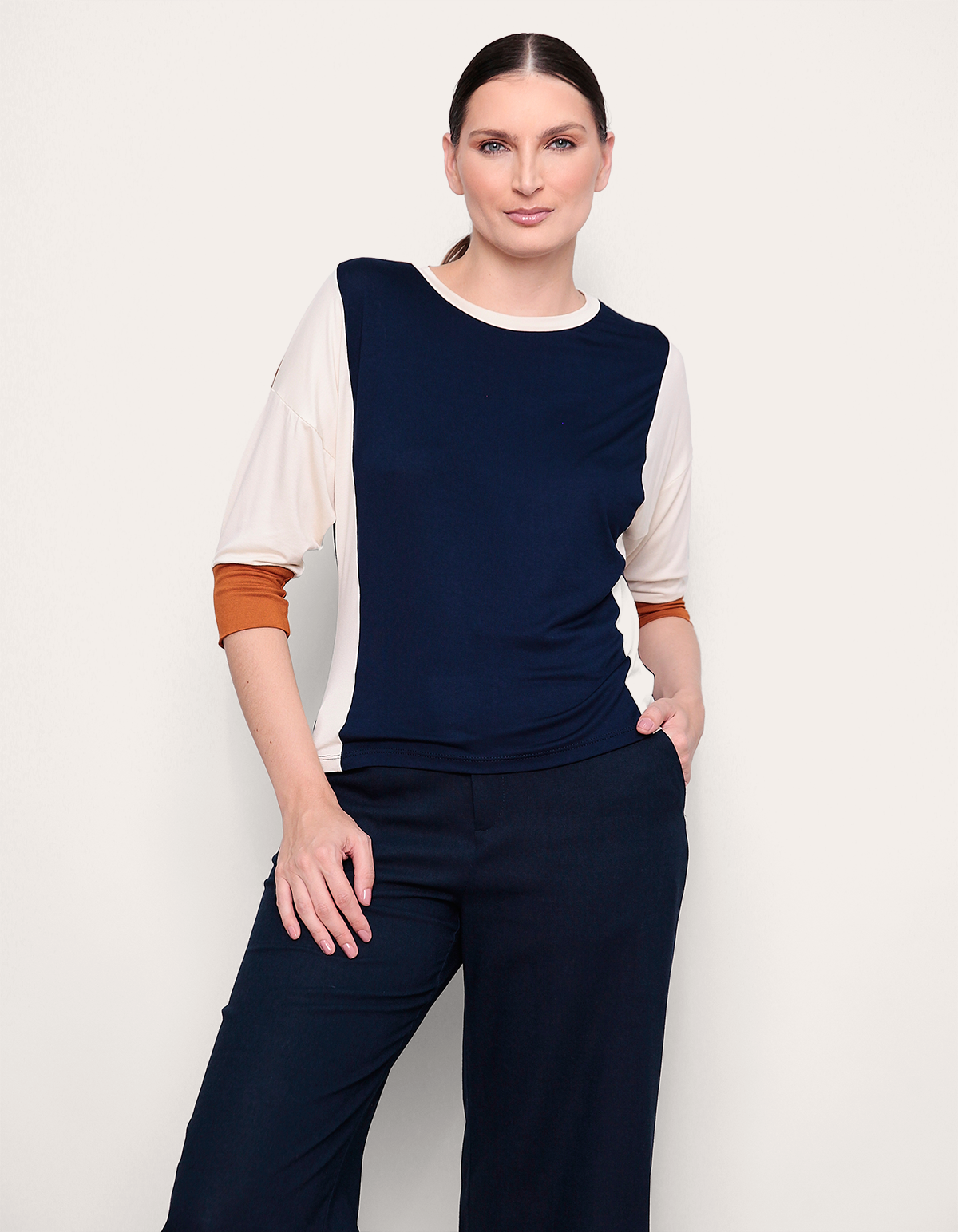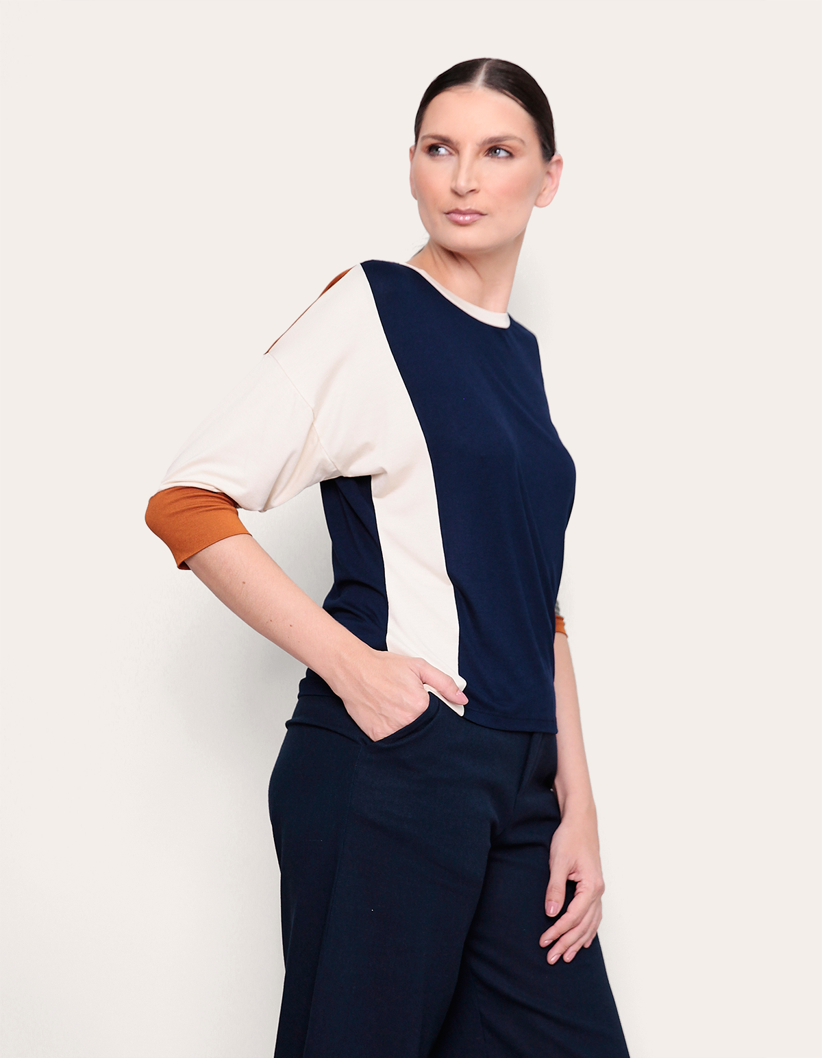 Blusa decote careca tricolor