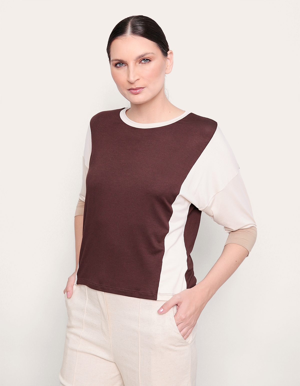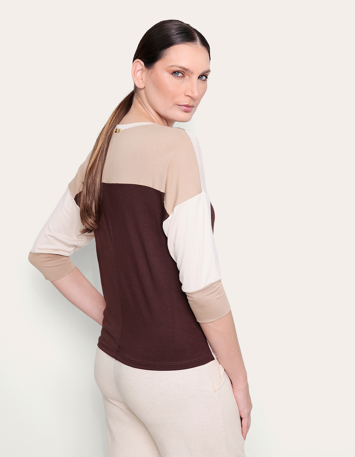Blusa decote careca tricolor