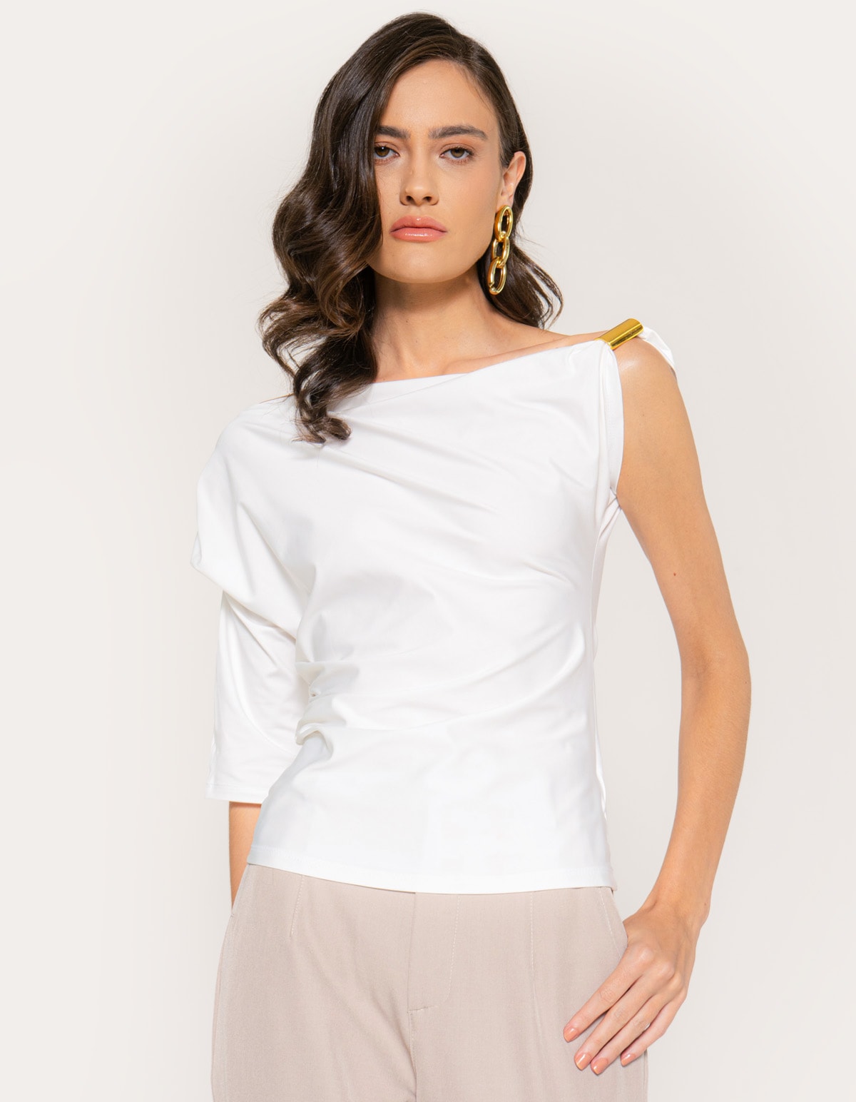 Blusa drapeada detalhe dourado