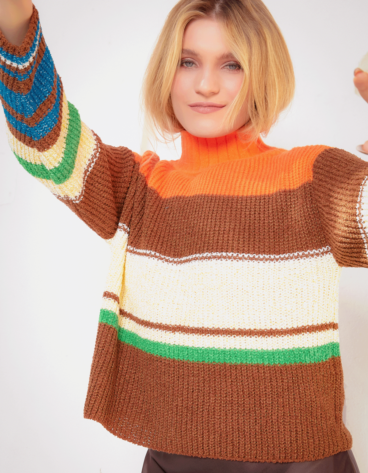 Blusa cropped gola alta tricot colorido. perfeita para compor looks com partes de baixo de cintura alta. é um tricot moderno para quem quer looks mais estilosos no inverno.
