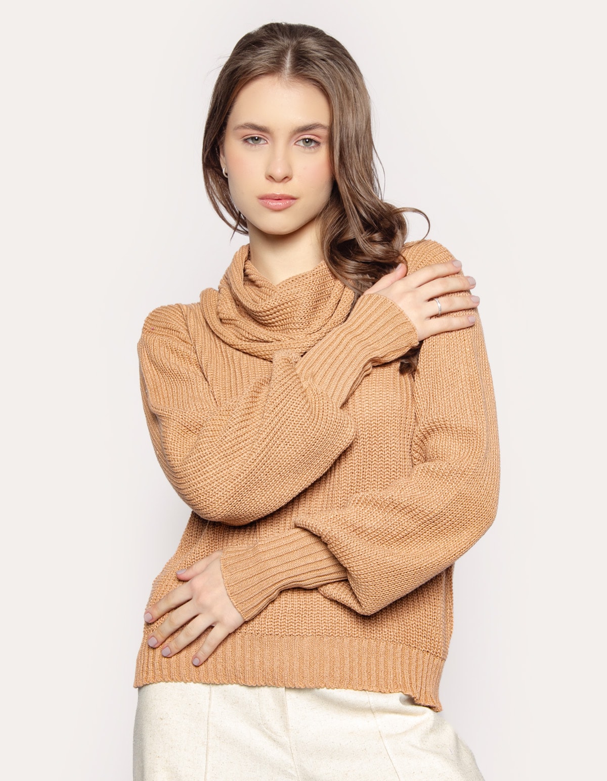 Blusa gola boba tricot manga longa