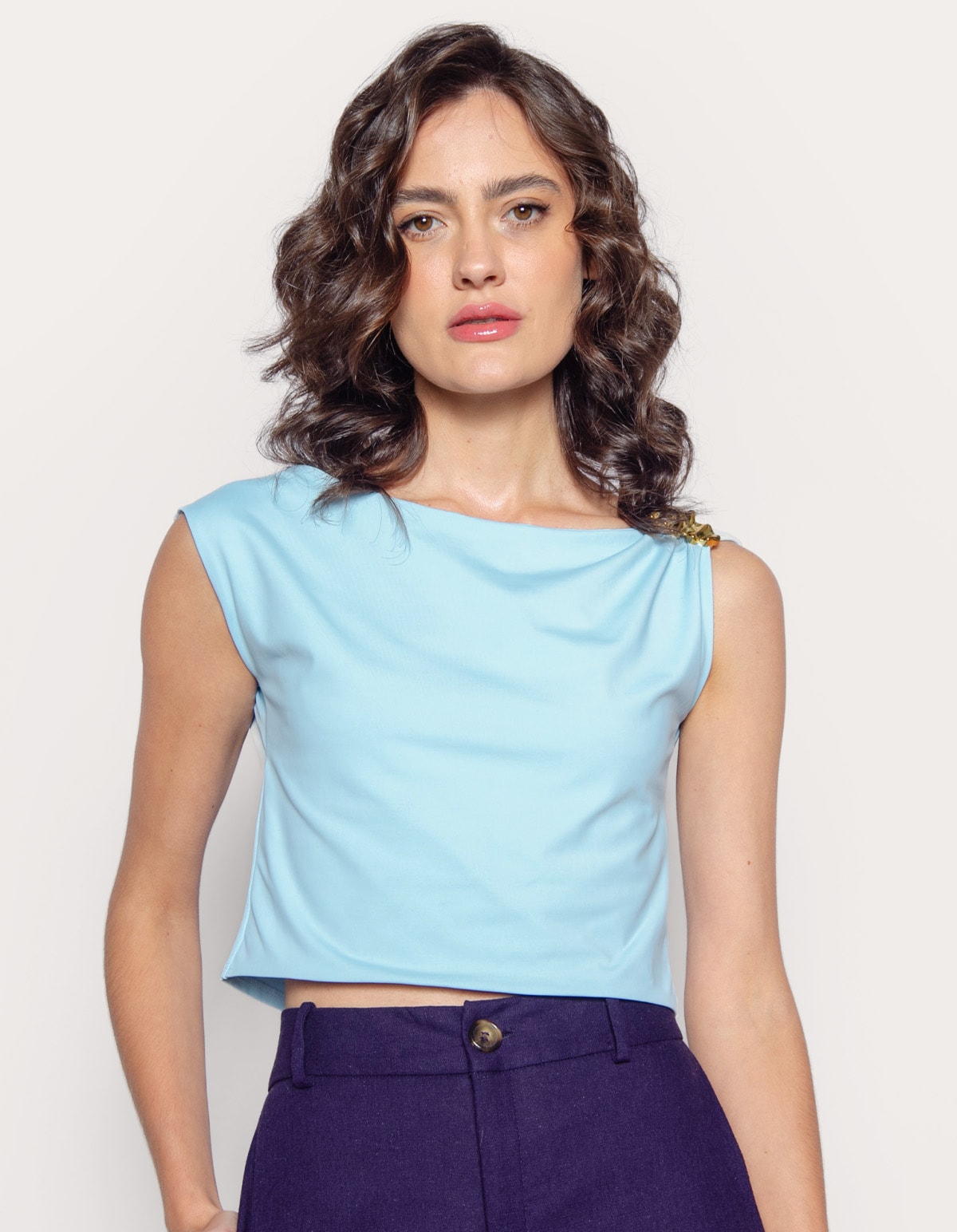 A blusa cropped “Luna” traz uma proposta moderna e minimalista, com foco no detalhe no ombro, que adiciona informação de moda de forma sutil. Com modelagem ajustada e comprimento cropped, valoriza a silhueta sem comprometer o conforto.