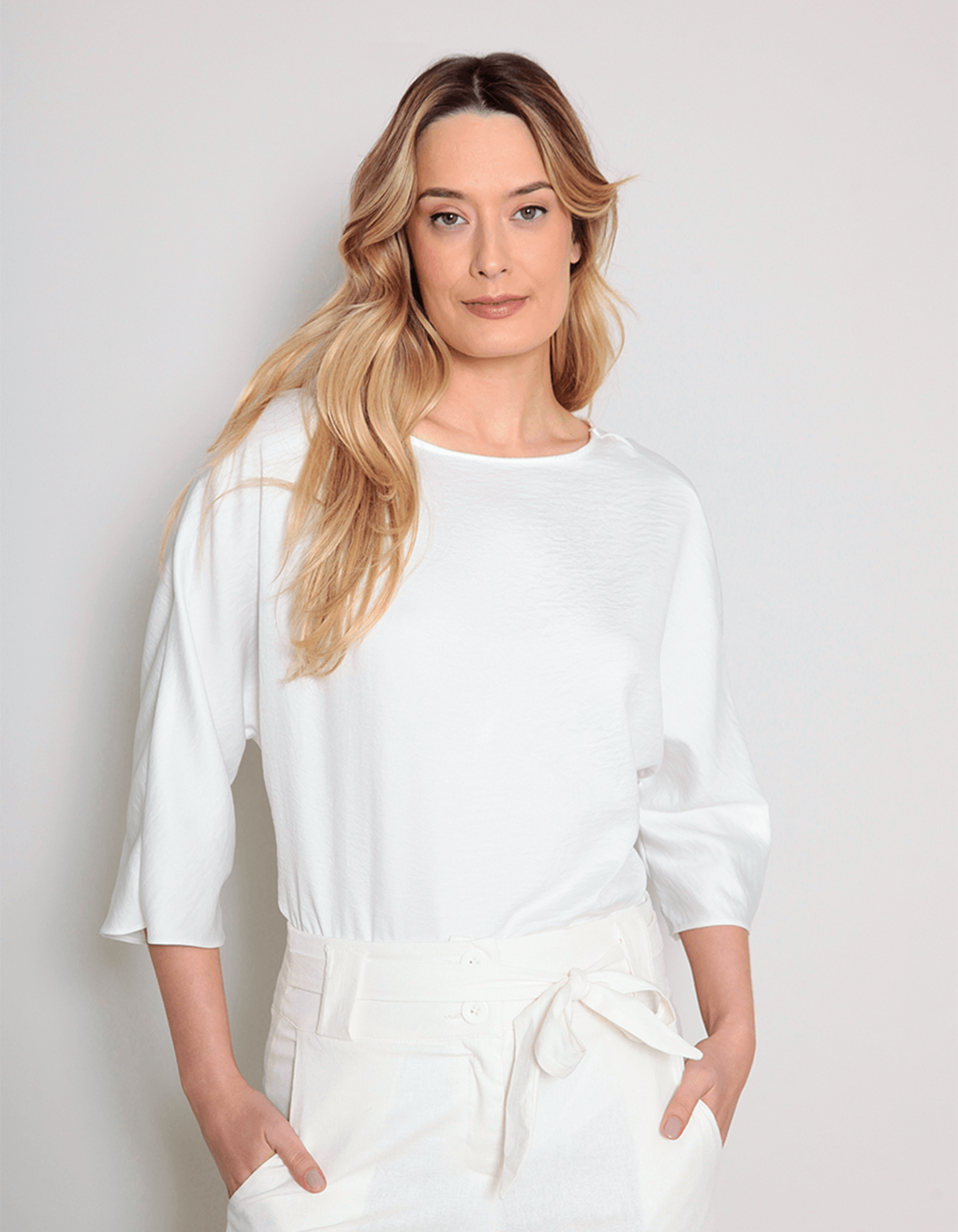 Blusa cetim, manga 3/4, decote canoa. a peça perfeita para adicionar um toque de sofisticação ao seu guarda-roupa. com um design fashion e chique, essa blusa é versátil e pode ser utilizada em diversas ocasiões, seja para o trabalho ou para um evento especial.