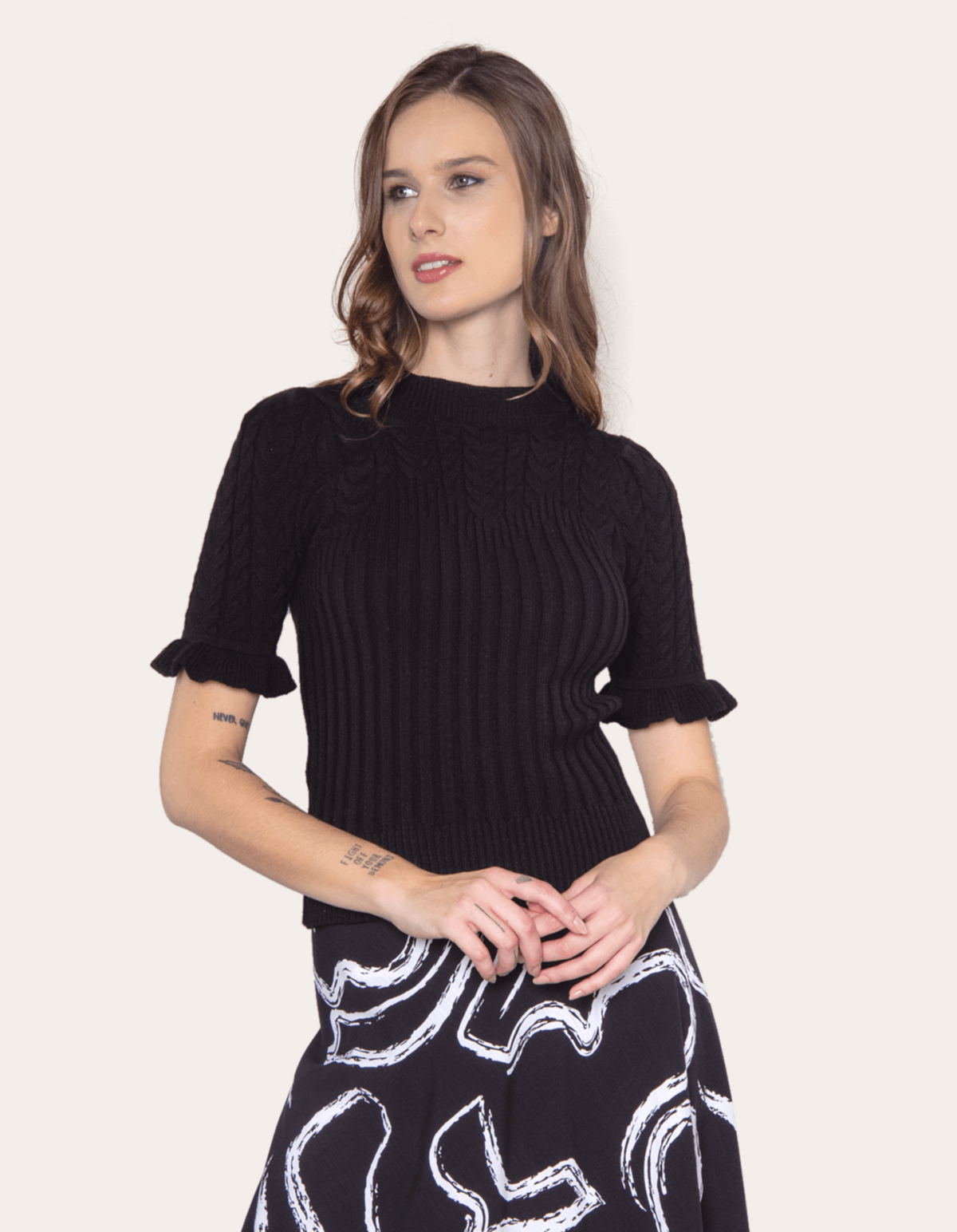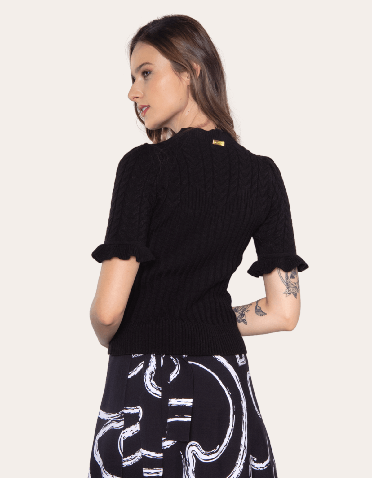 Blusa tricot manga curta babado, golinha média. um modelo que se encaixa em qualquer look. a peça é confortável leve e cheia de charme, o modelo possui ótima vestibilidade e capaz de muitas combinações.