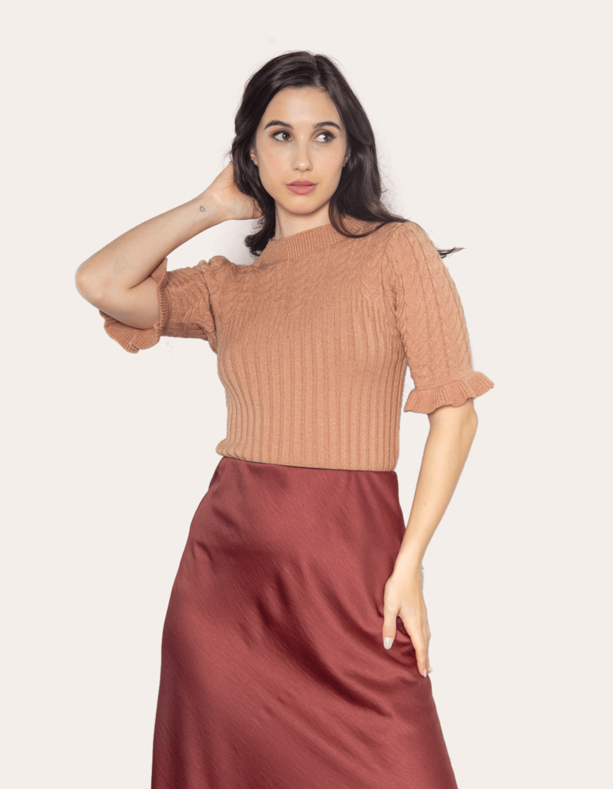 Blusa manga babado tricot