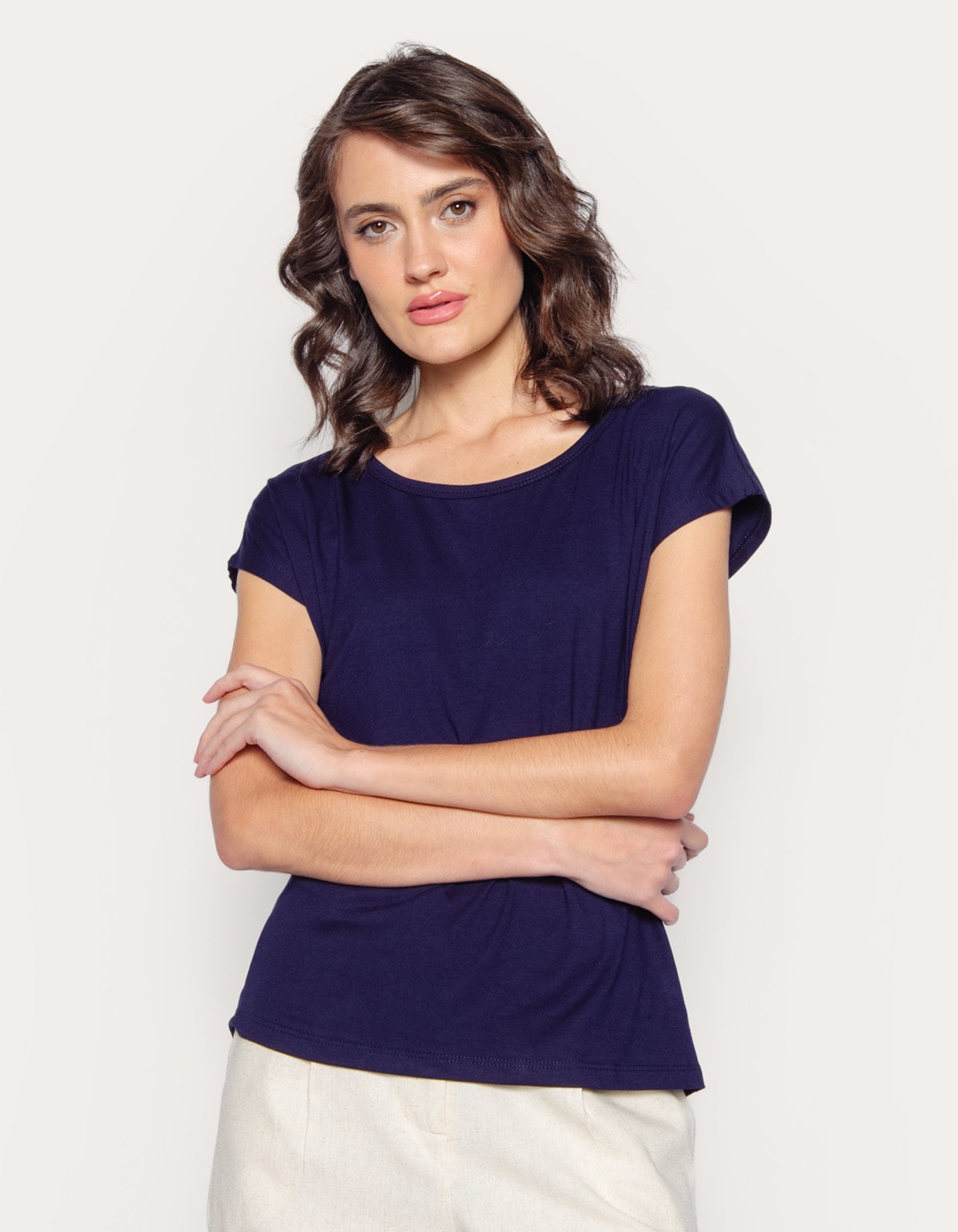 Blusa feminina de manga curta lisa com decote redondo. aquela peça básica que não pode faltar.