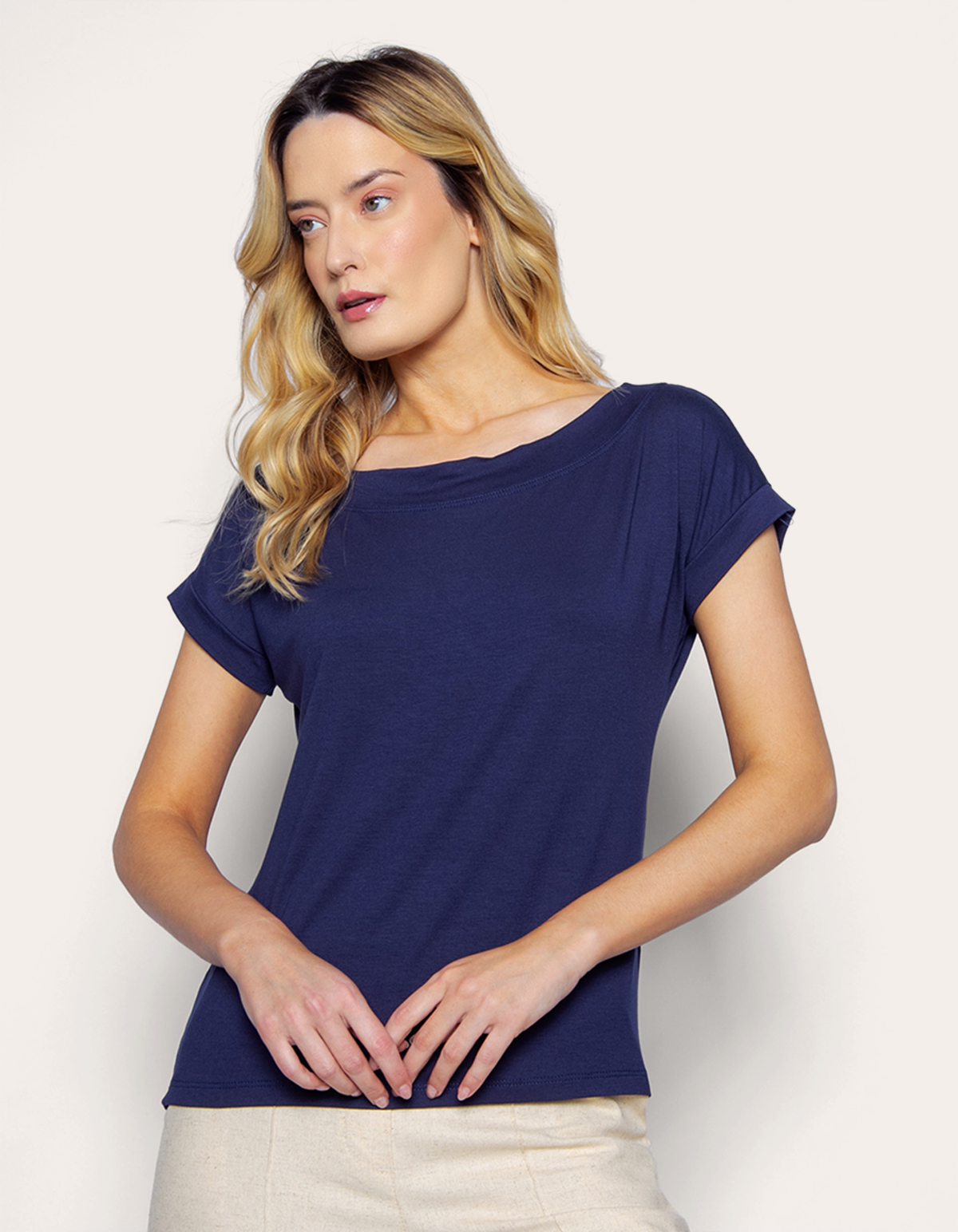 Blusa manga curta canoa Azul escuro