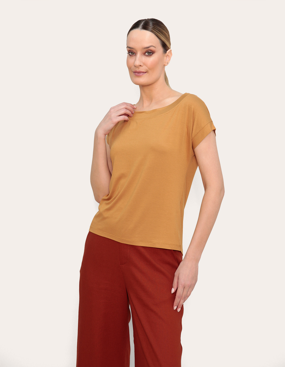 Blusa manga curta canoa Curry