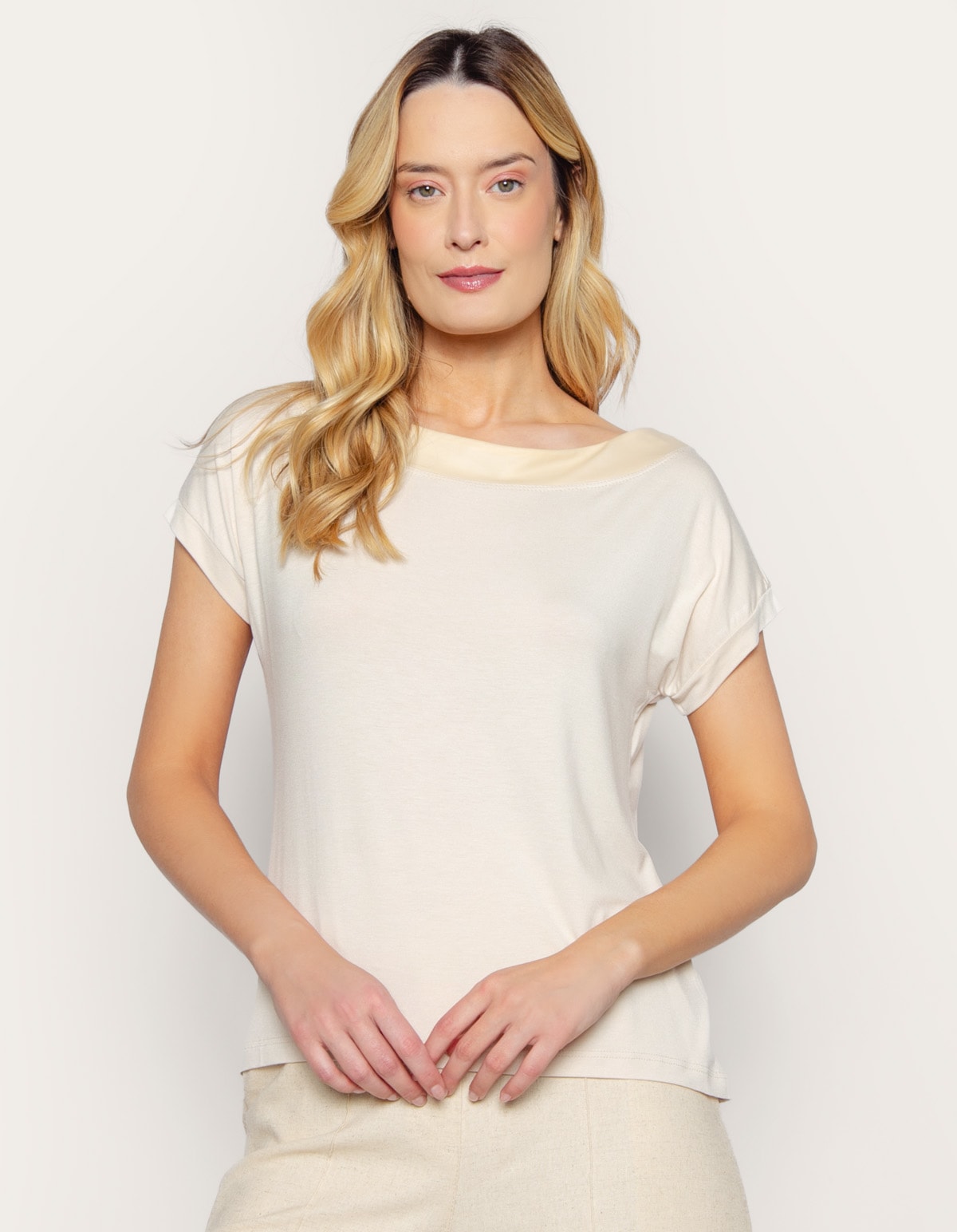 Blusa manga curta canoa decote cirre