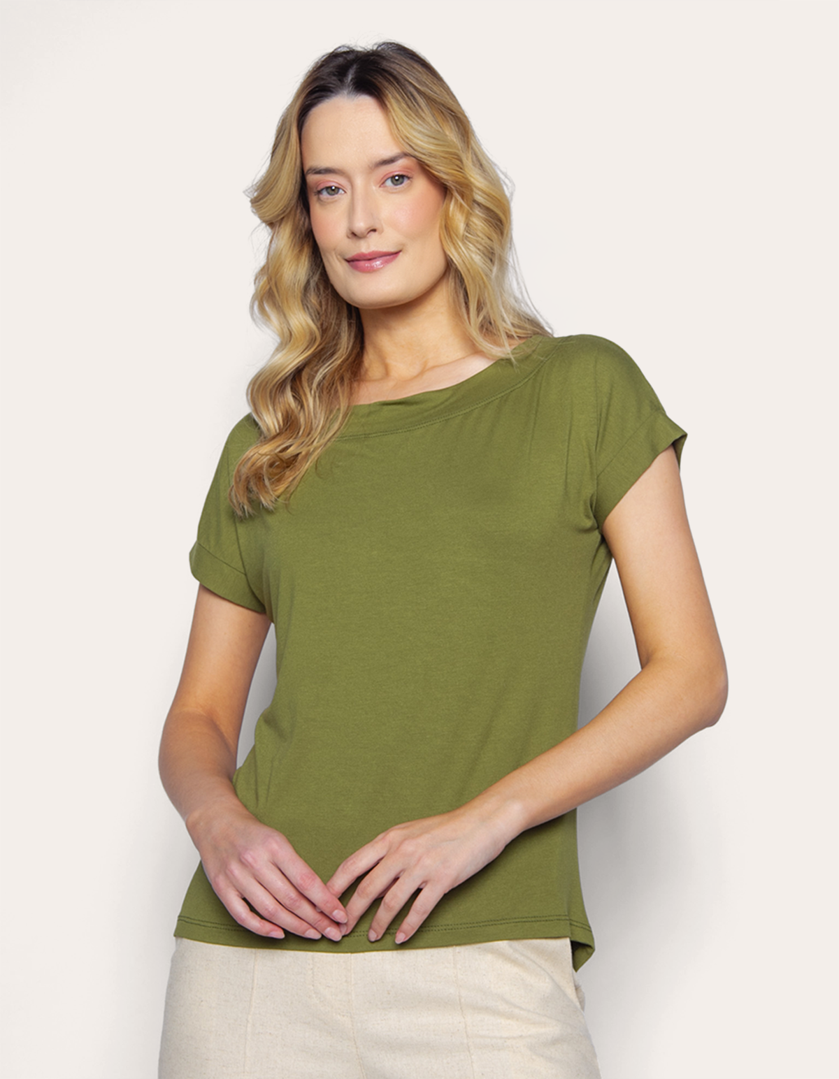 Blusa manga curta canoa Oliva medio