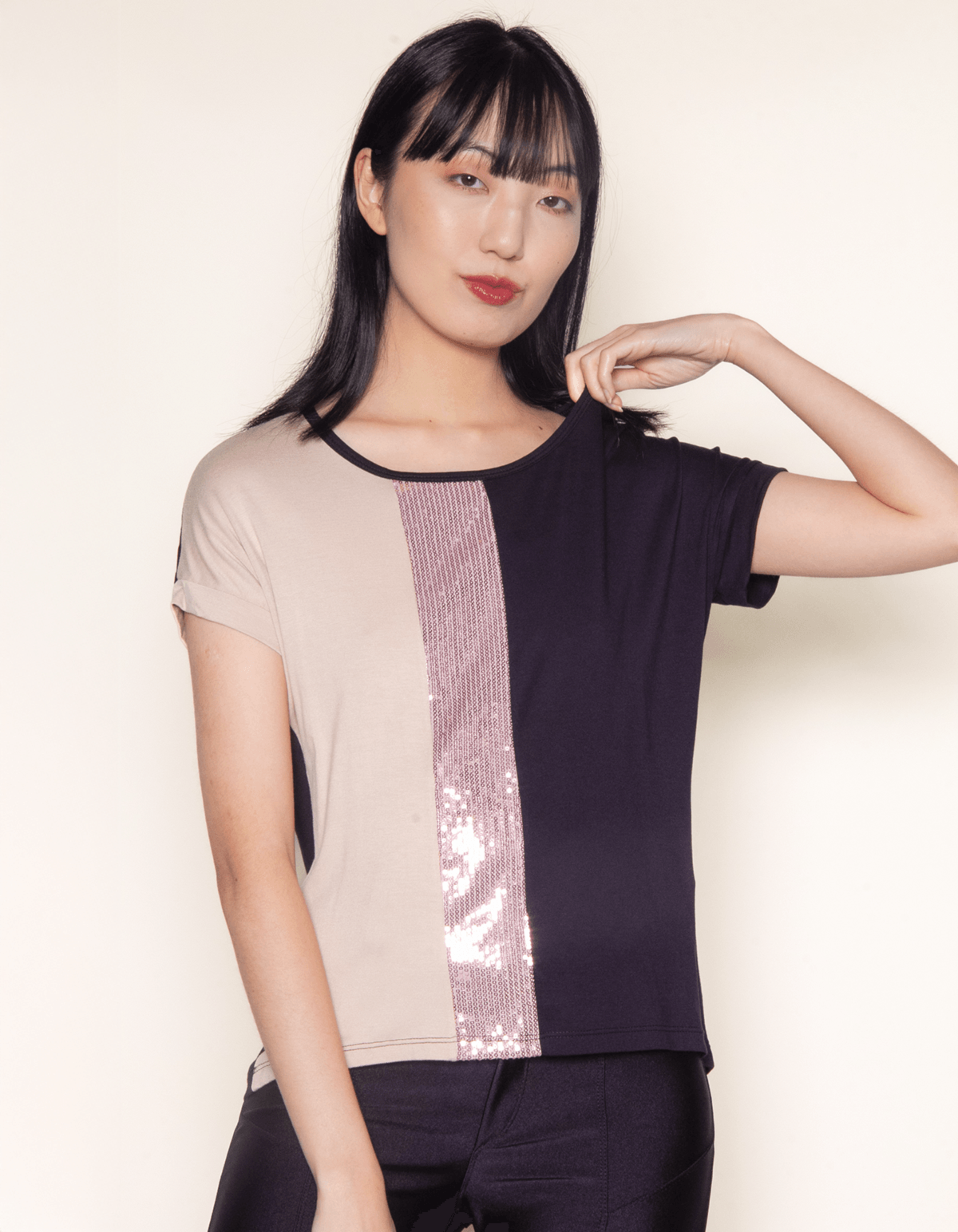 Blusa manga curta faixa paete