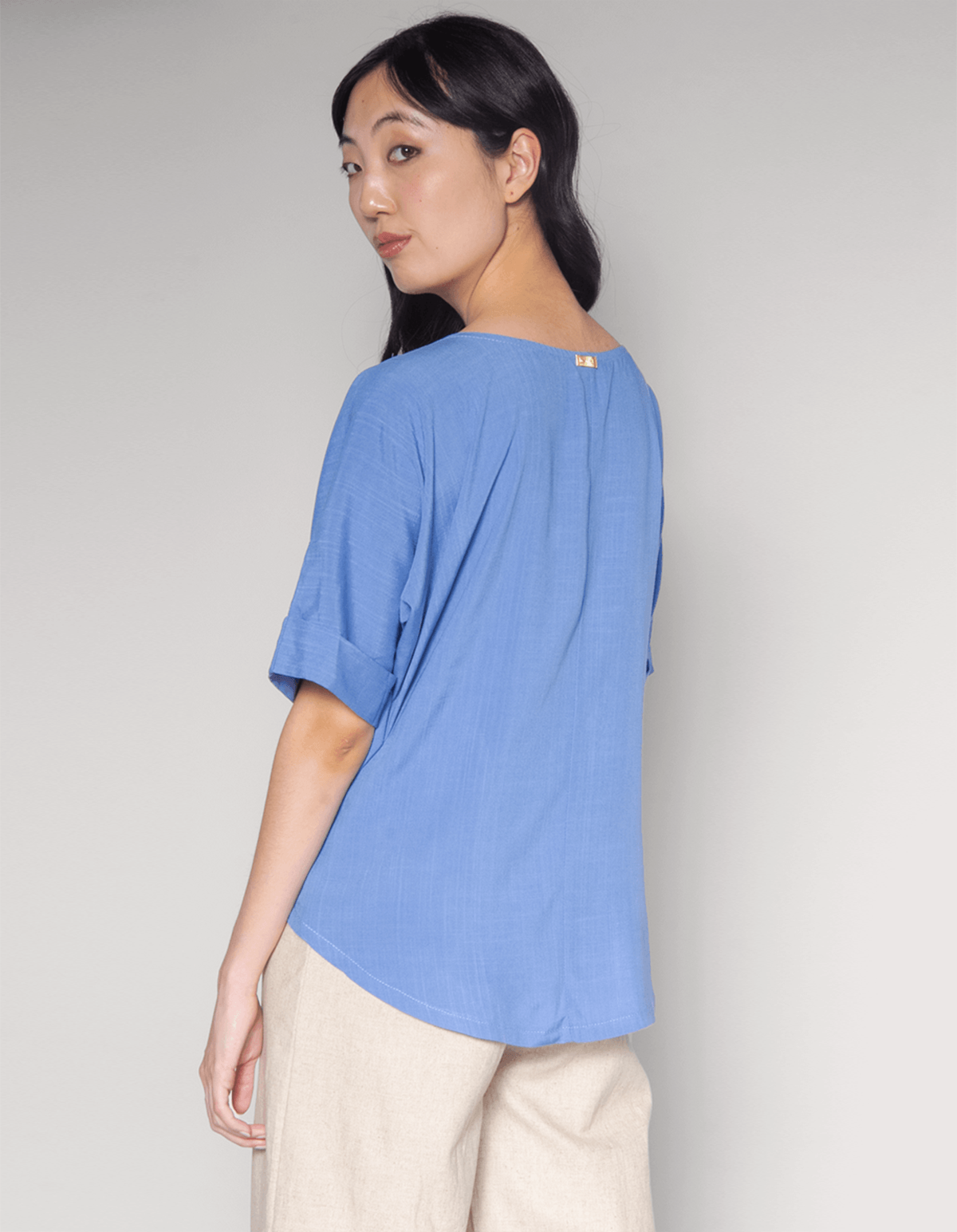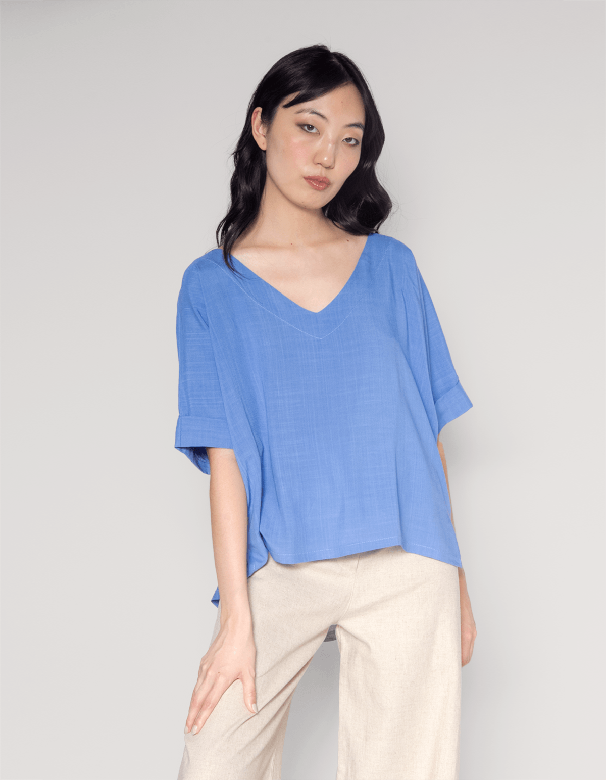 Blusa feminina lisa de manga curta com decote v. uma peça soltinha e confortável.