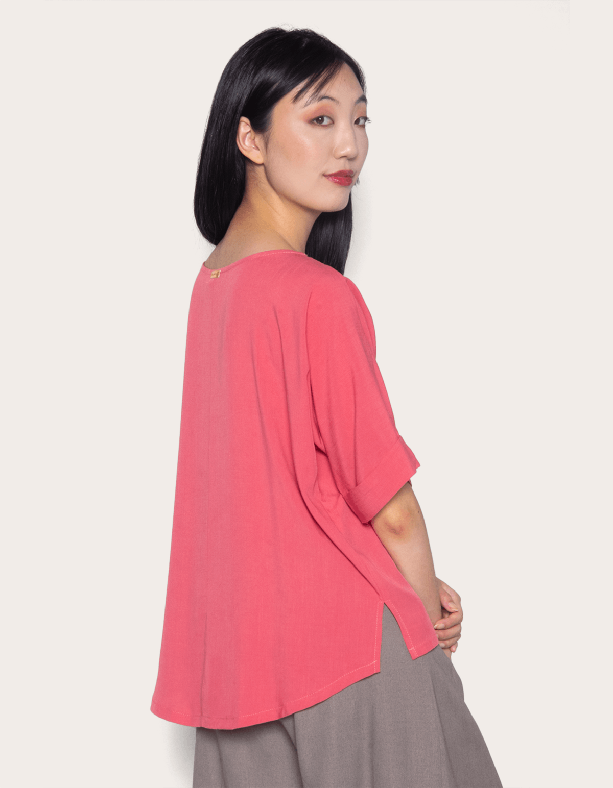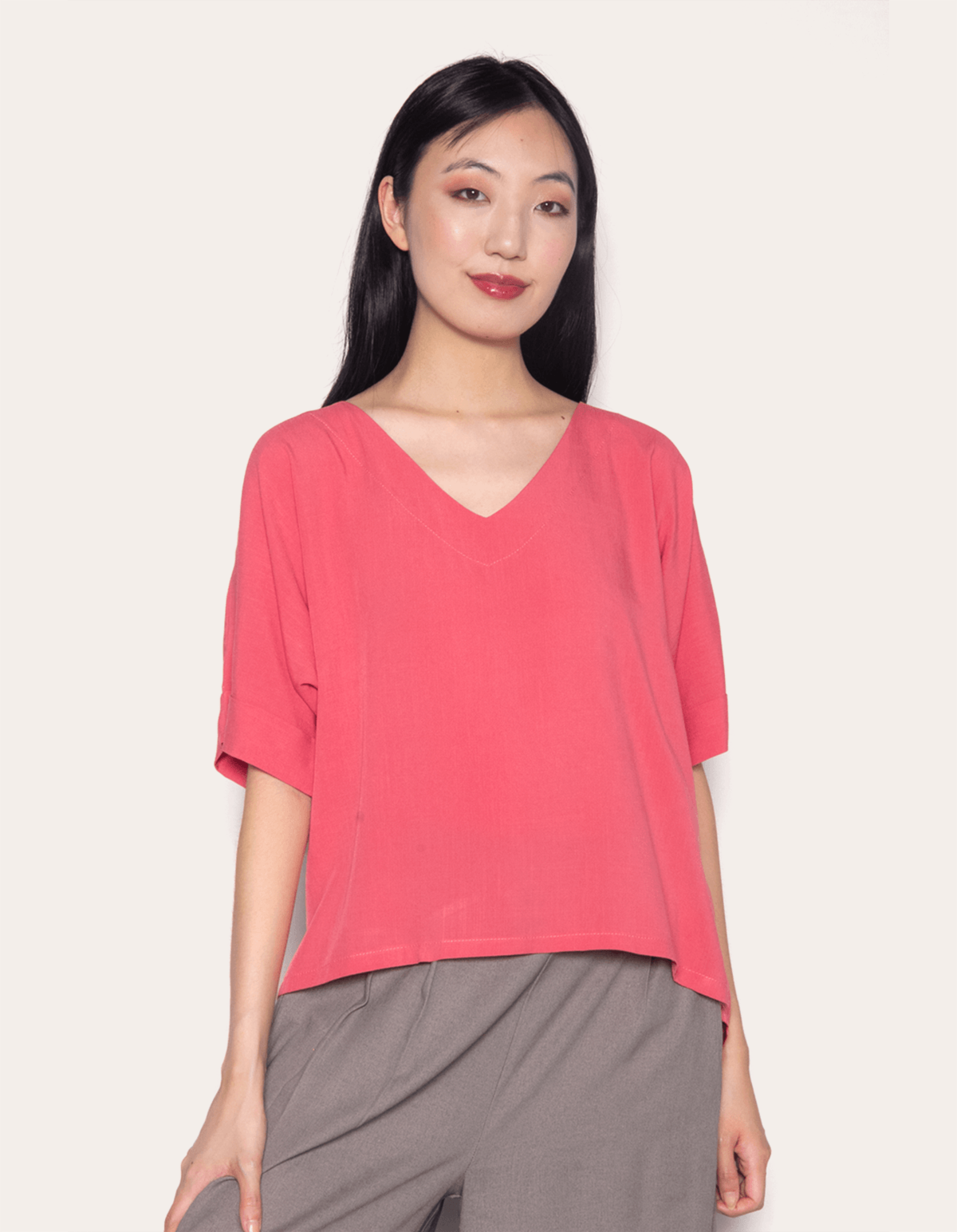 Blusa feminina lisa de manga curta com decote v. uma peça soltinha e confortável.