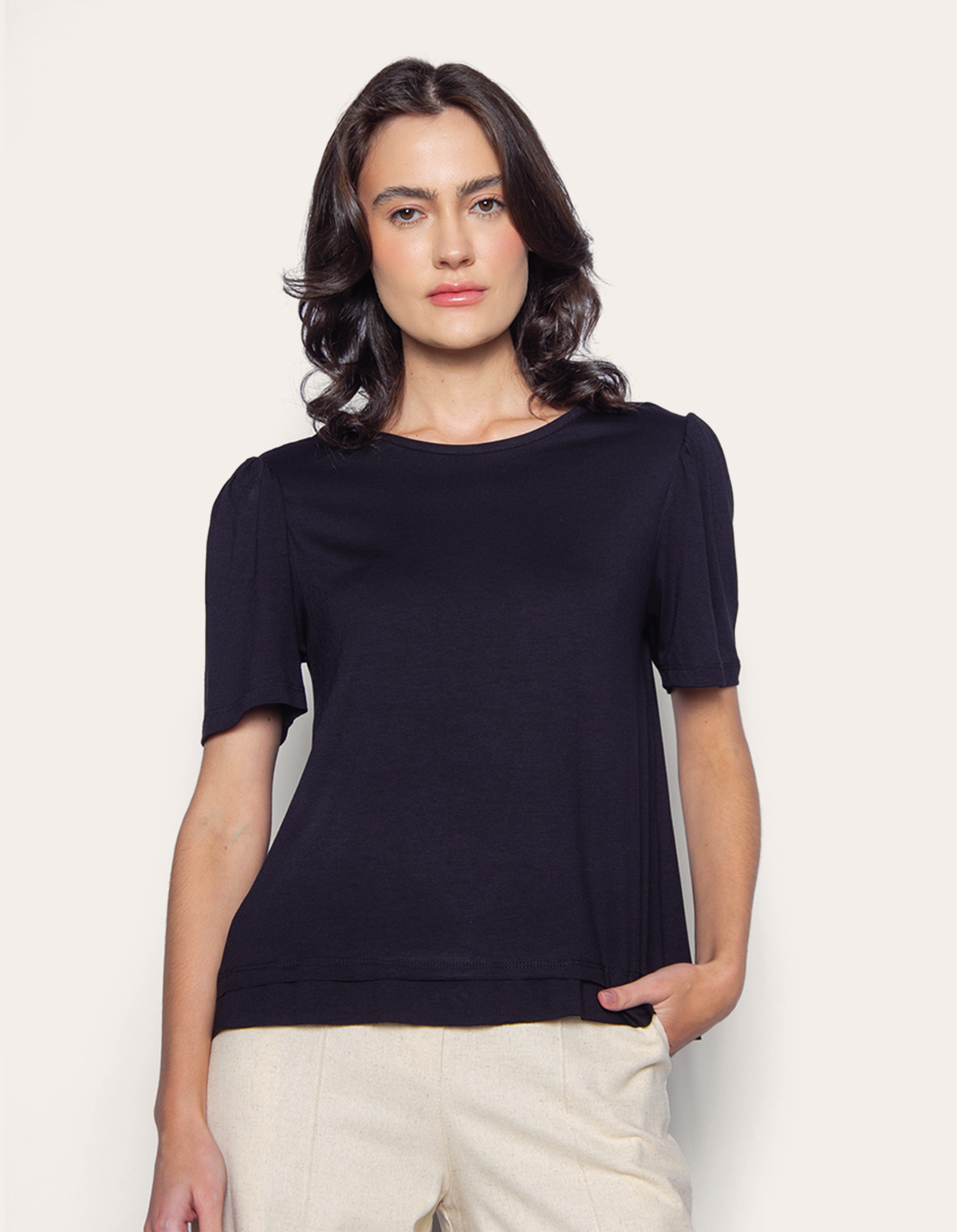 Blusa manga curta mini franzido
