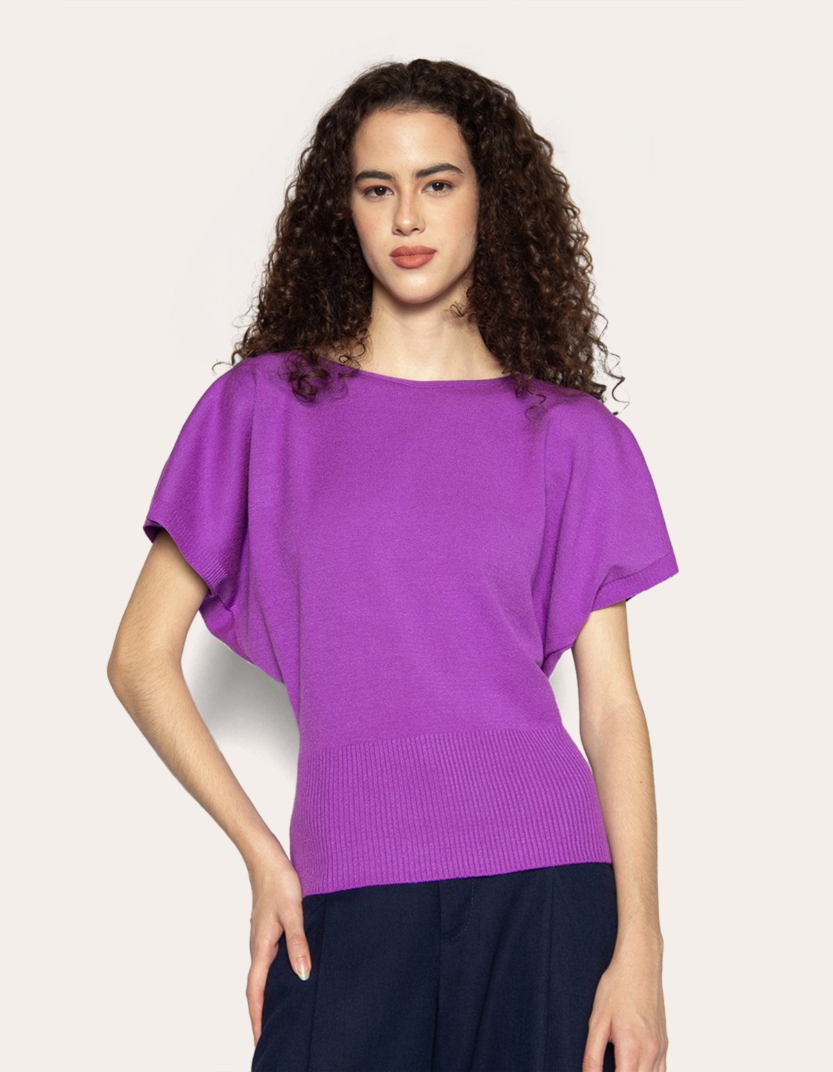 Blusa manga curta morcego tricot