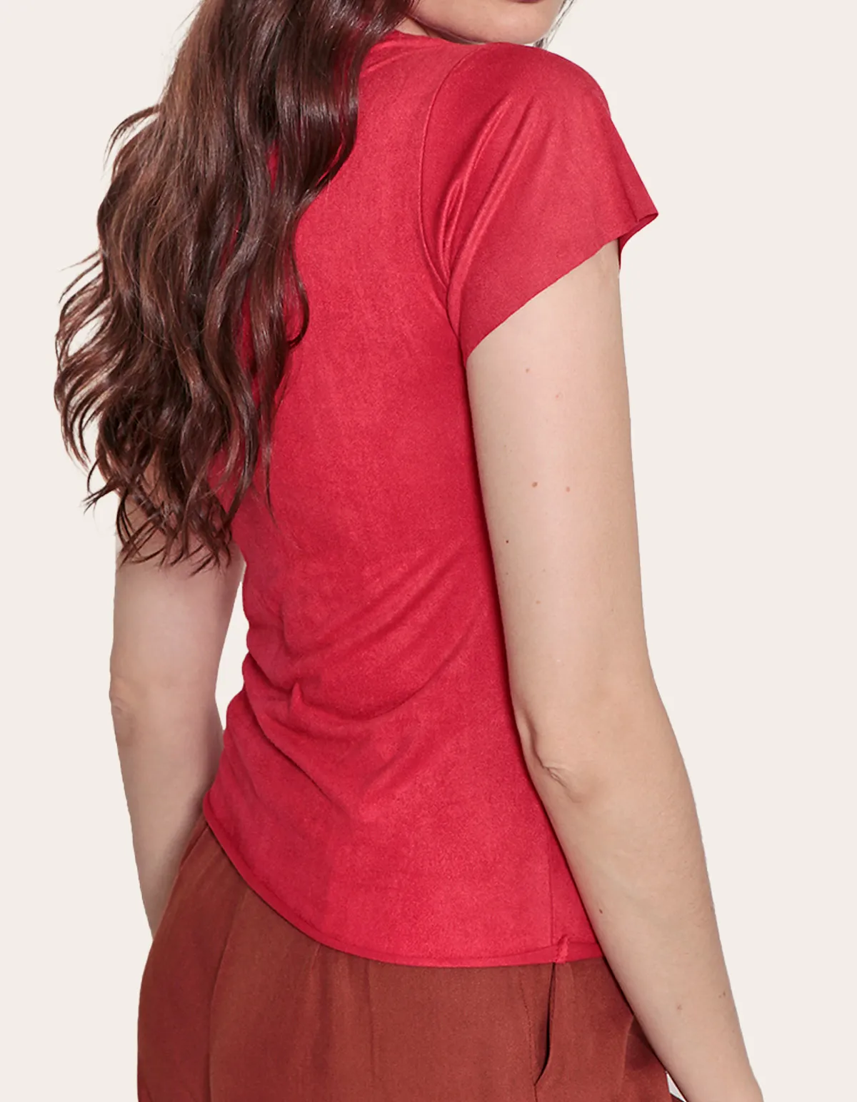 Blusa manga curta suede