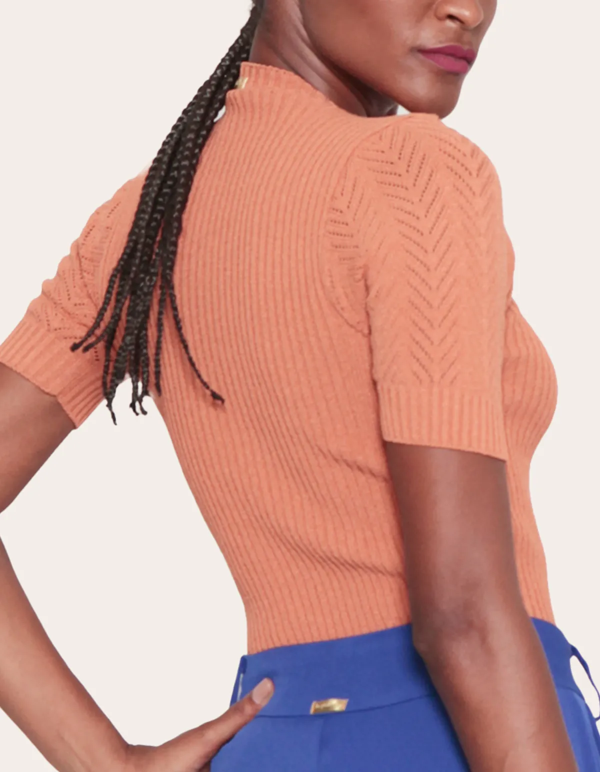 Apresentamos uma blusa confeccionada em tricot, uma peça que combina conforto e estilo de maneira excepcional. seu modelo de gola redonda e mangas curtas oferece um visual clássico e versátil, perfeito para diferentes ocasiões. no entanto, o que realmente chama a atenção são os detalhes vazados, que conferem um toque de elegância e modernidade à blusa. esses detalhes vazados adicionam um elemento intrigante ao design, criando um contraste interessante com a textura do tricot. seja para um look casual ou para um evento mais especial, esta blusa tricotada é uma escolha única e estilosa que certamente irá impressionar.