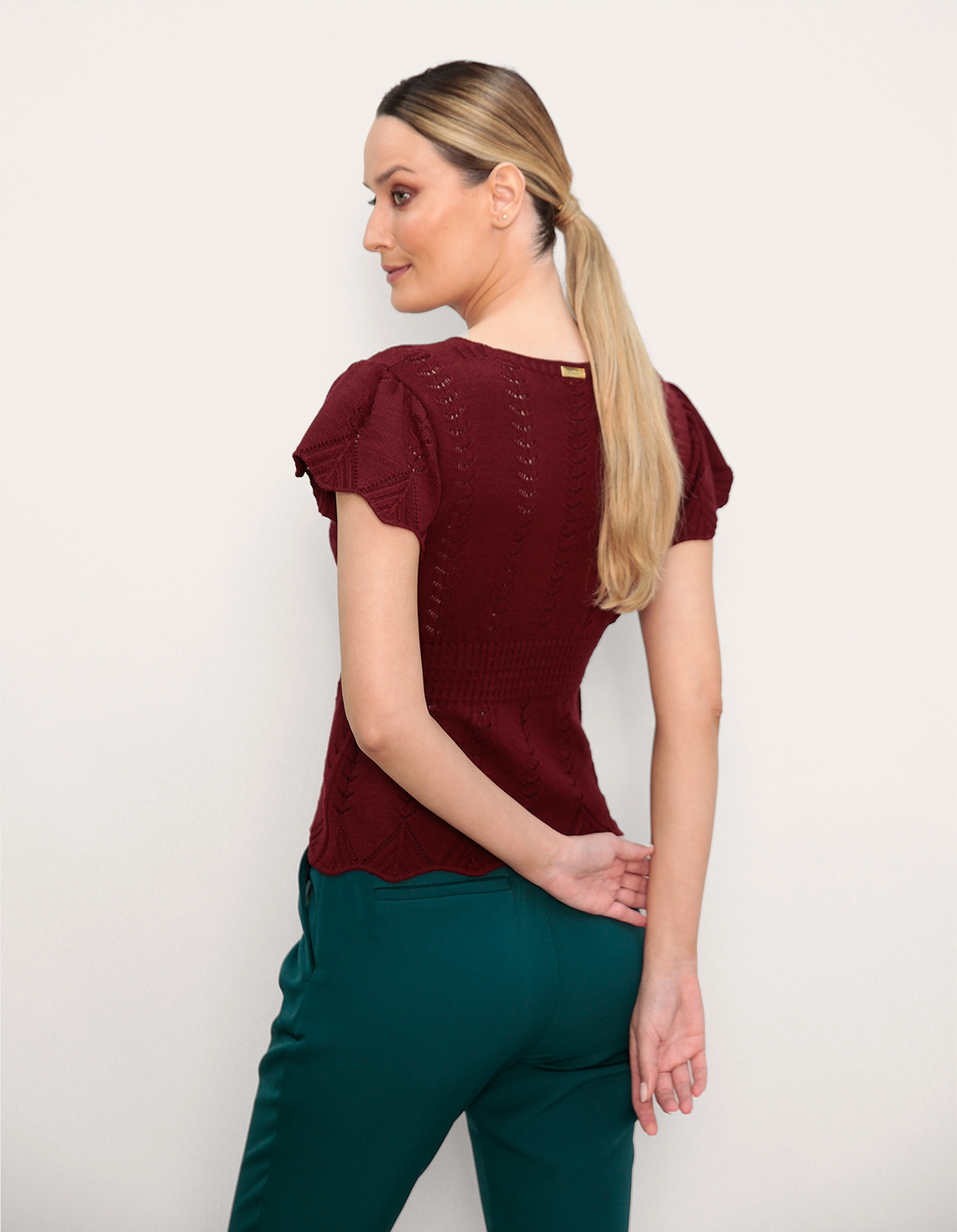 Blusa manga curta tricot babado