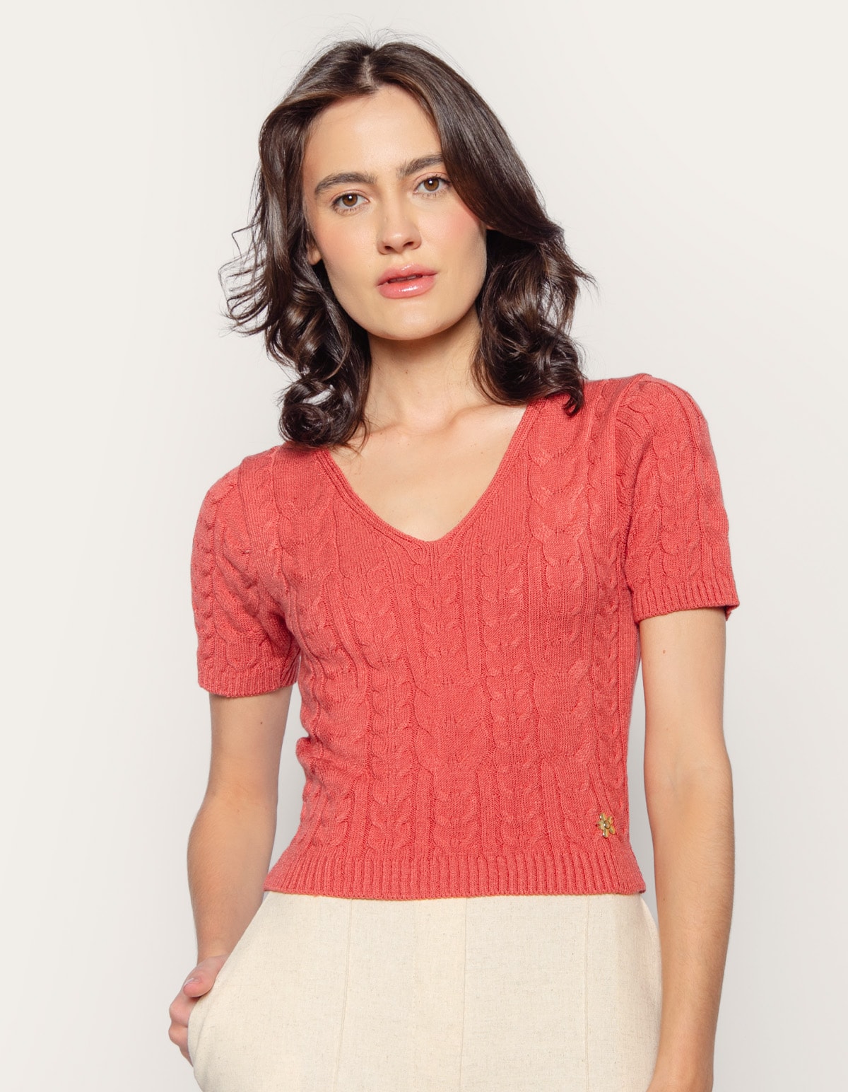 Blusa cropped tricot, manga curta, decote v. essa peça oferece um toque elegante ao visual e é uma escolha versátil para diversas ocasiões.