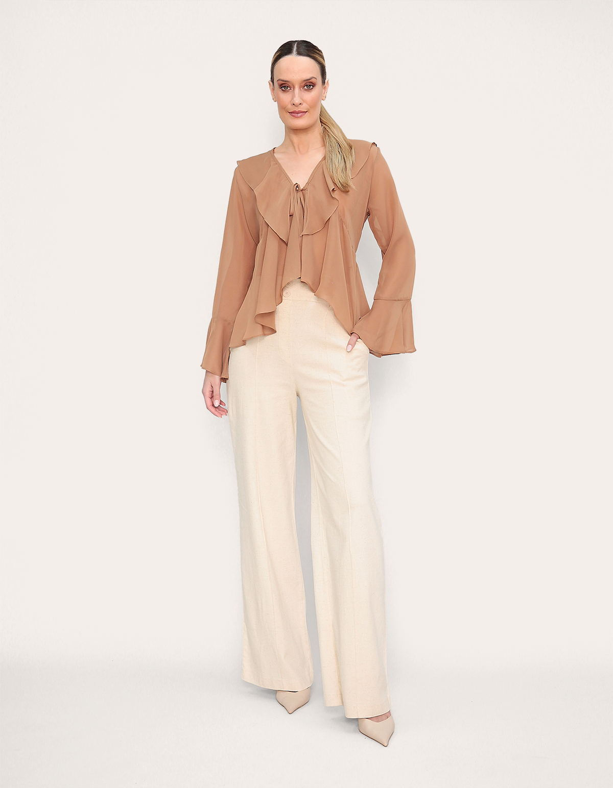 Blusa manga longa babados
