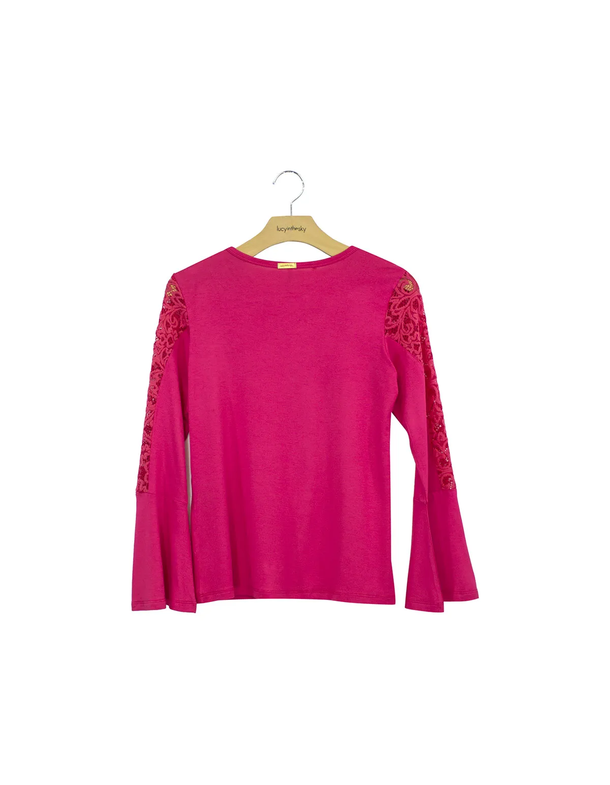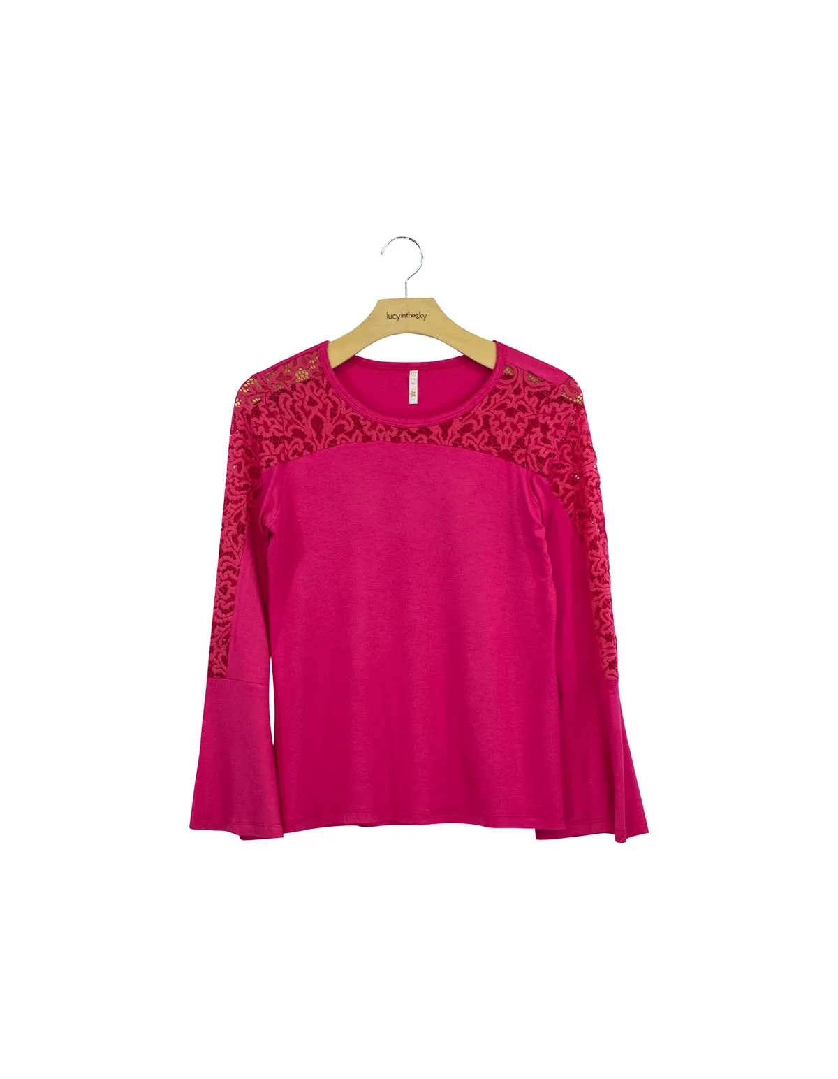 Blusa manga longa boca sino pala renda