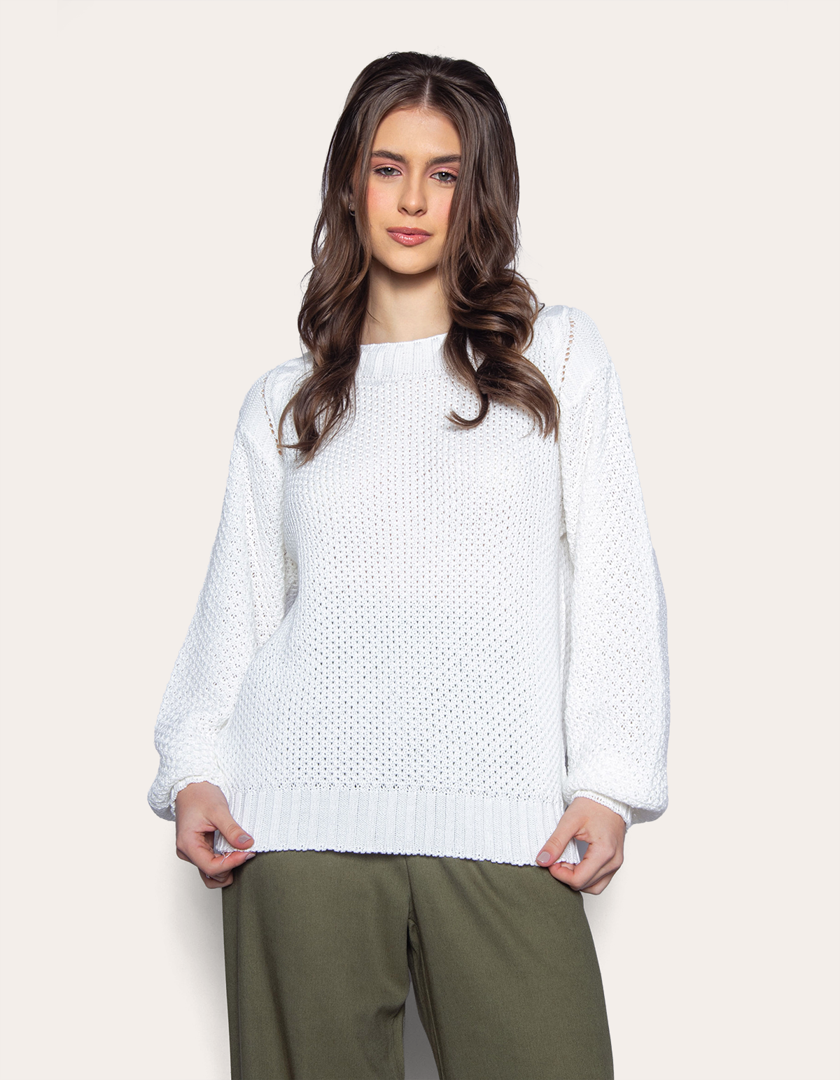 Blusa manga longa bufante tricot
