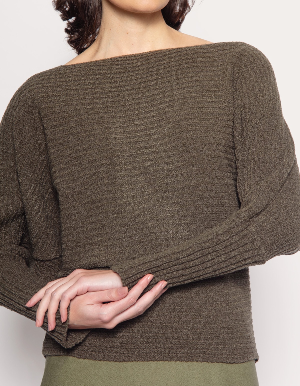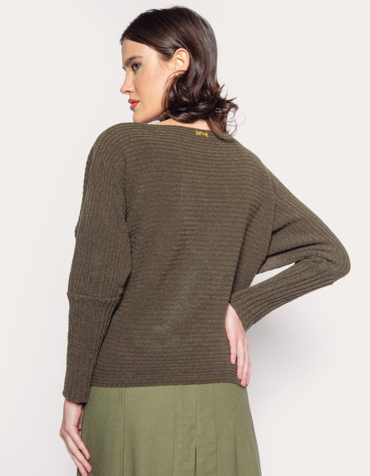 Blusa manga longa, tricot canelado de toque macio e quente, decote canoa. Com mangas estilo morcego e gola aberta, ele é perfeito para adicionar uma pitada de arte e moda ao seu guarda-roupa. Seu design exclusivo e luxuoso irá garantir que você se destaque em qualquer ocasião.