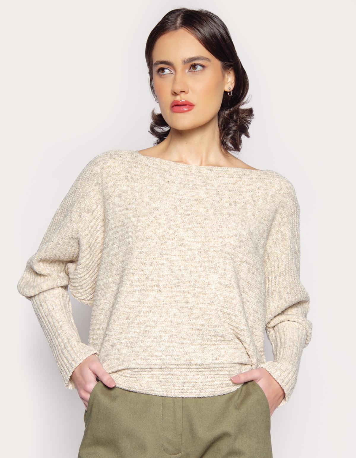 Blusa manga longa, tricot canelado de toque macio e quente, decote canoa. Com mangas estilo morcego e gola aberta, ele é perfeito para adicionar uma pitada de arte e moda ao seu guarda-roupa. Seu design exclusivo e luxuoso irá garantir que você se destaque em qualquer ocasião.