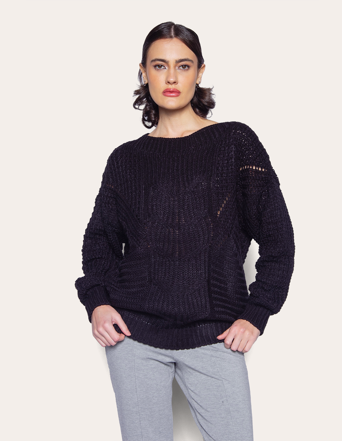 A blusa manga longa tricot, possui uma trama texturizada com desenhos na frente. De modelagem soltinha possui decote canoa na medida certa. Uma peça que possui um toque agradável em contato com a pele. Ideal para compor looks de inverno cheios de personalidade.