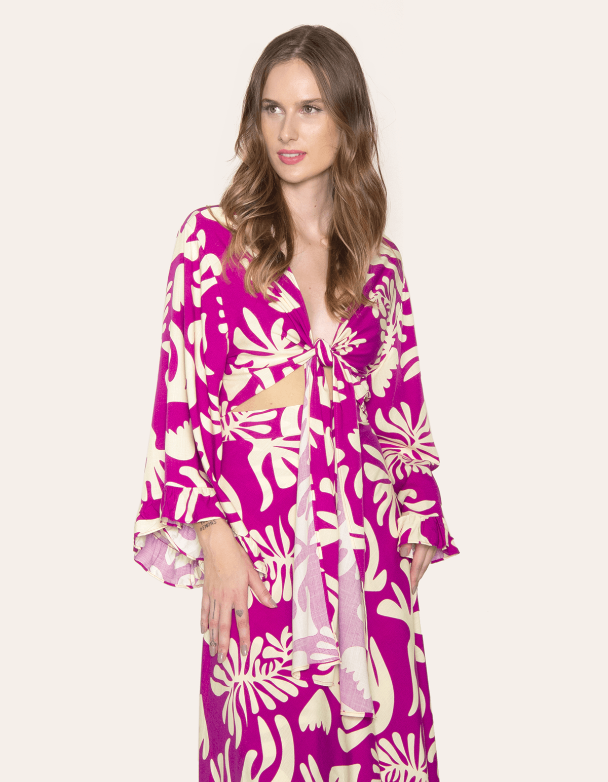 A peça possui mangas longas modelagem ampla com detalhe de babado nos punhos, com faixas alongadas aplicadas na parte da frente na altura da barra ela pode ser usada de duas formas, amarrada na frente ou então transpassar e amarrar atrás, seu comprimento é cropped. versátil e sofisticada, ela é perfeita para acompanhar você no dia a dia, com mangas amplas que trazem um toque de modernidade aos looks. além disso, a malha viscose tem um toque incrível e se ajusta perfeitamente ao corpo, perfeita para combinar com calça de alfaiataria.