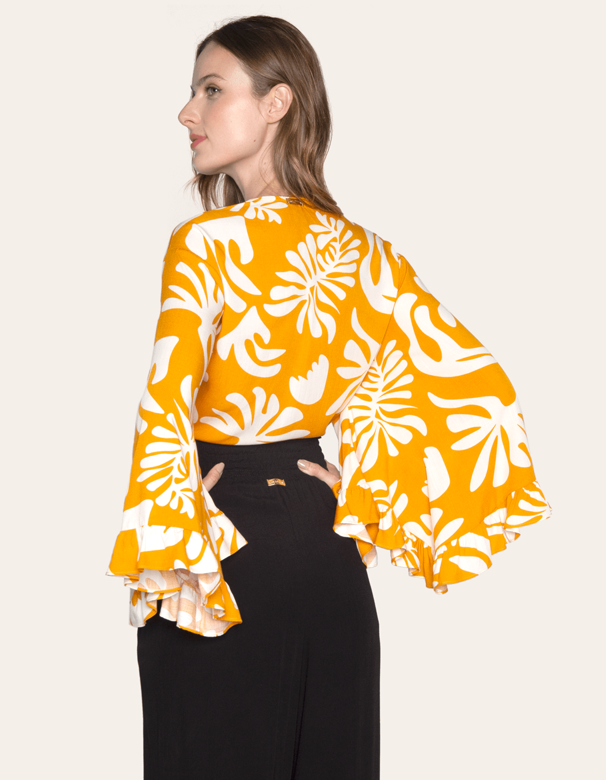 A peça possui mangas longas modelagem ampla com detalhe de babado nos punhos, com faixas alongadas aplicadas na parte da frente na altura da barra ela pode ser usada de duas formas, amarrada na frente ou então transpassar e amarrar atrás, seu comprimento é cropped. versátil e sofisticada, ela é perfeita para acompanhar você no dia a dia, com mangas amplas que trazem um toque de modernidade aos looks. além disso, a malha viscose tem um toque incrível e se ajusta perfeitamente ao corpo, perfeita para combinar com calça de alfaiataria.