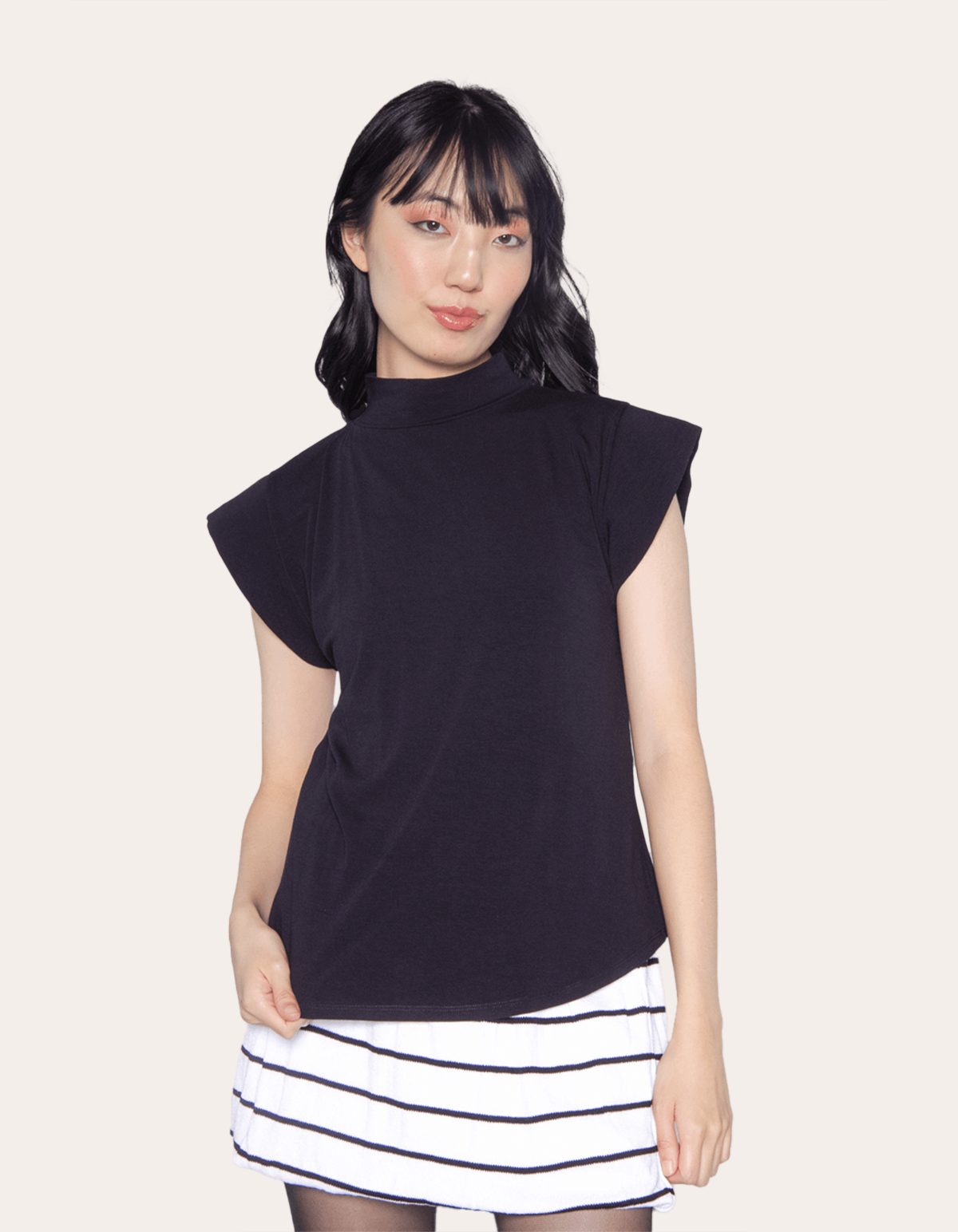 Blusa de malha com caimento solto, gola alta, mangas cavadas musclee tee. a muscle tee traz um toque de estilo ao look. podendo compor desde um visual despojado, até uma mais sofisticada. invista nesse modelo e arrase no look super criativo!