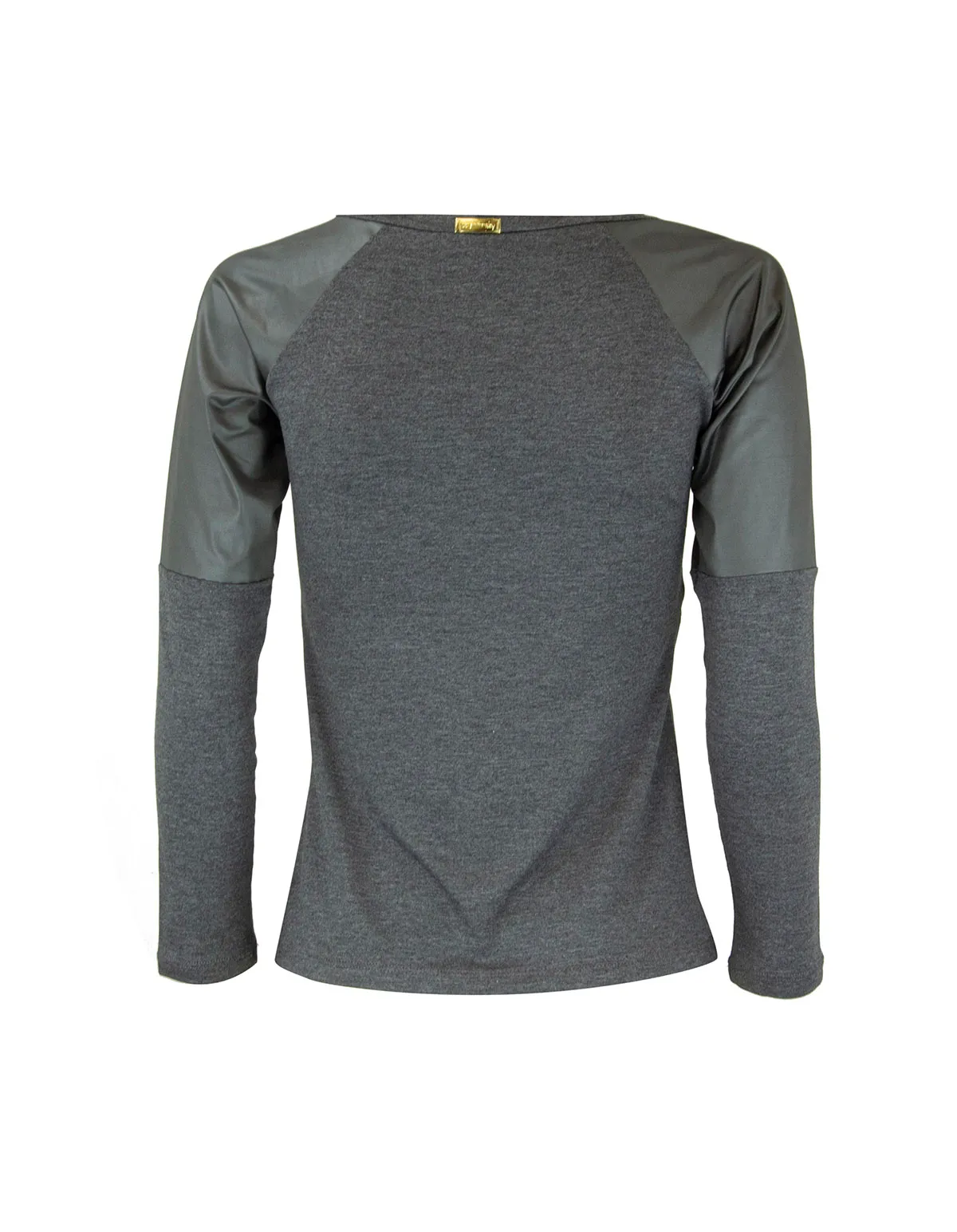 Blusa raglan ombro e detalhe barra cirre Chumbo/preto