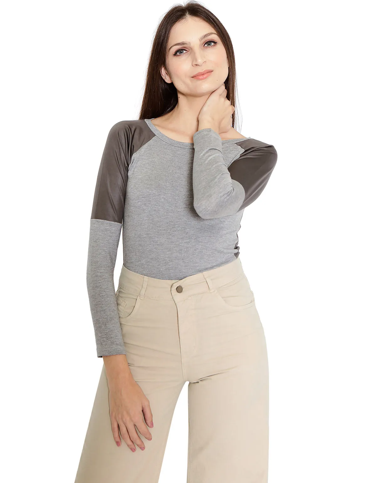 Blusa raglan ombro e detalhe barra cirre Cinza