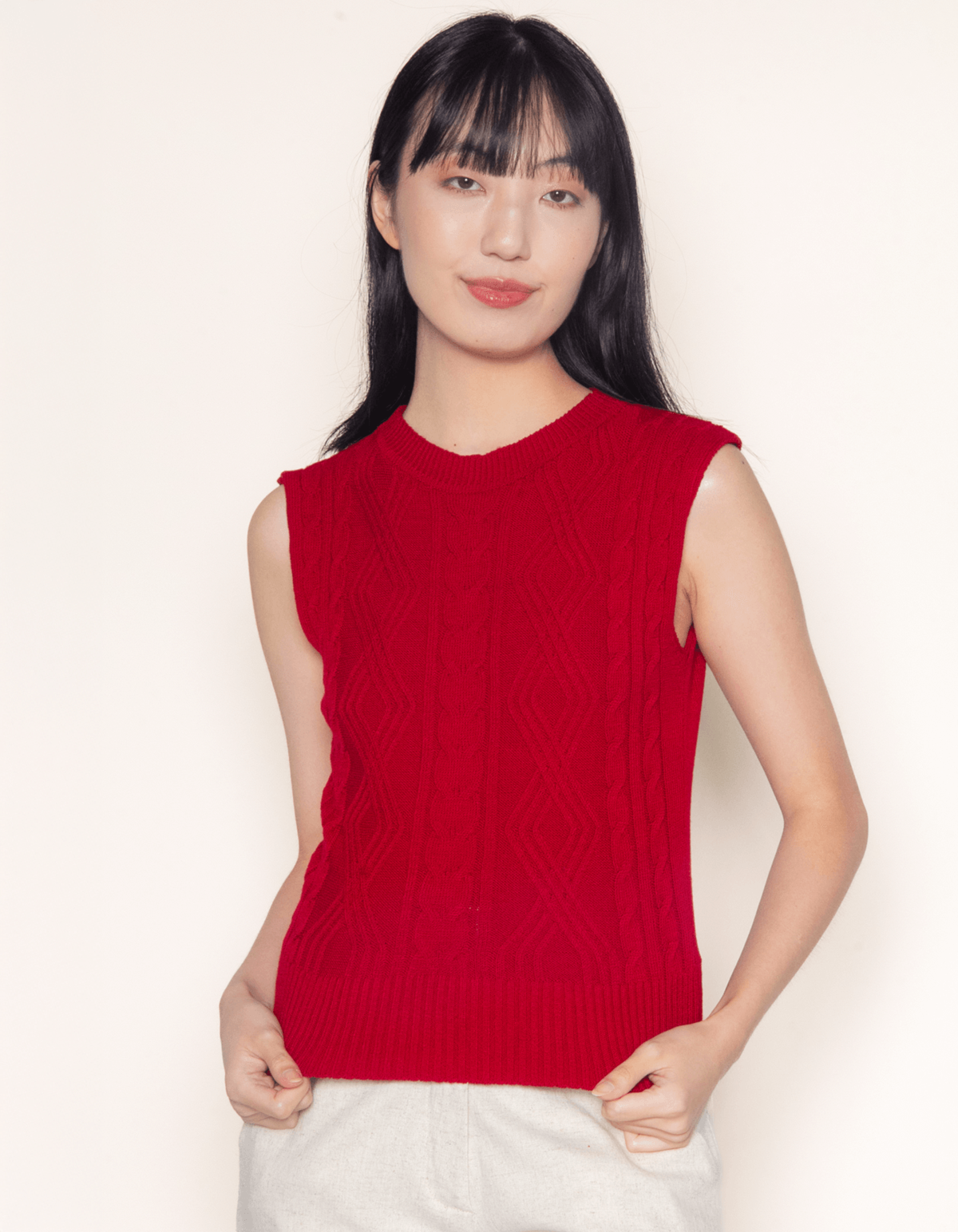 A blusa é confeccionada em tricot, combinando estilo e conforto. com detalhes de trança e losangulos que adicionam textura e elegância. sem manga, esta peça é versátil para várias ocasiões - ideal para looks de dias mais quentes ou com sobreposições, a blusa oferece um toque artesanal e sofisticado ao seu visual. perfeita para combinar com peças de cintura alta, essa blusa sem manga de tricot é uma escolha moderna e charmosa.