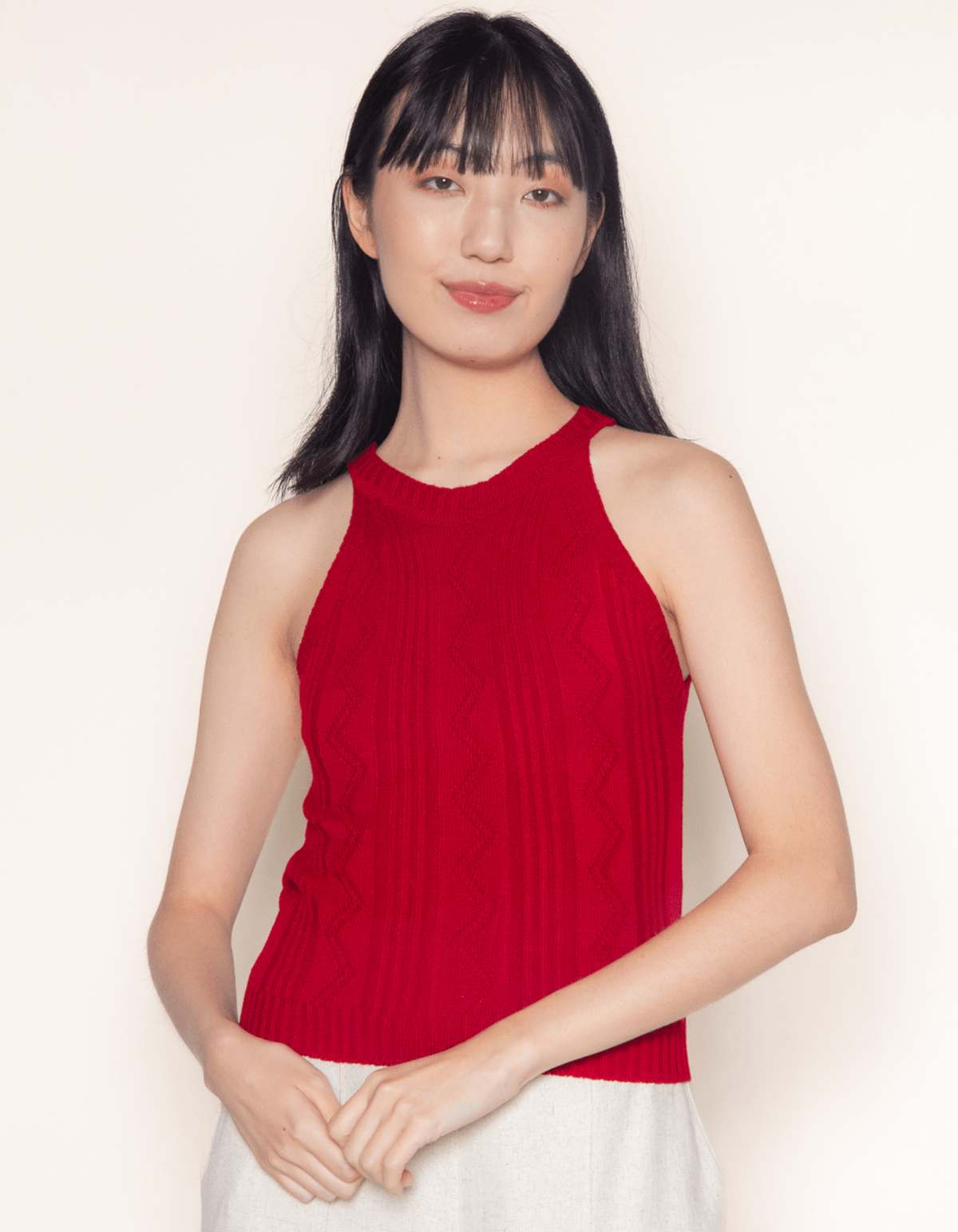 A blusa é confeccionada em tricot, combinando estilo e conforto. com detalhes de zig zag e listras que adicionam textura e elegância. sem manga, esta peça é versátil para várias ocasiões - ideal para looks de dias mais quentes ou com sobreposições, a blusa oferece um toque artesanal e sofisticado ao seu visual. perfeita para combinar com peças de cintura alta, essa blusa sem manga de tricot é uma escolha moderna e charmosa.