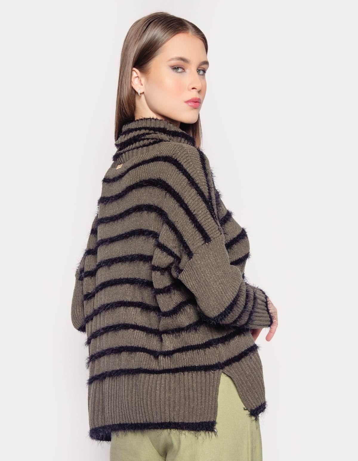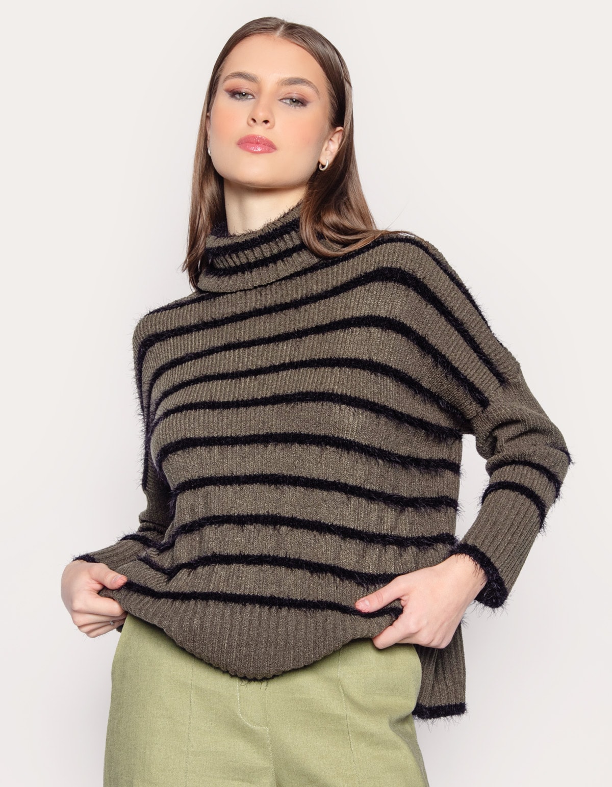 Com mangas longas, gola alta e uma linda textura de pelinhos, é a escolha perfeita para quem busca elegancia e aconchego nas estações mais frias.