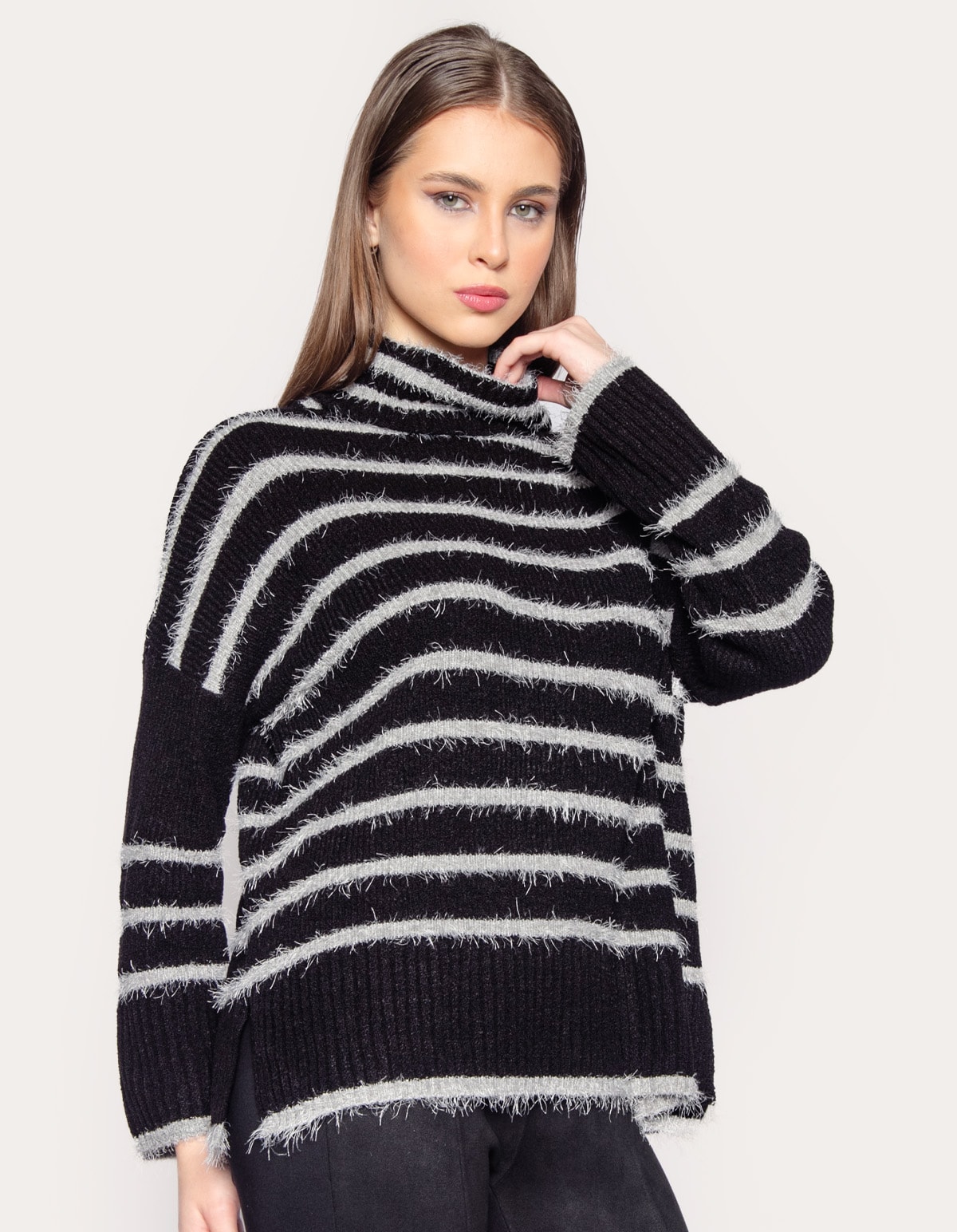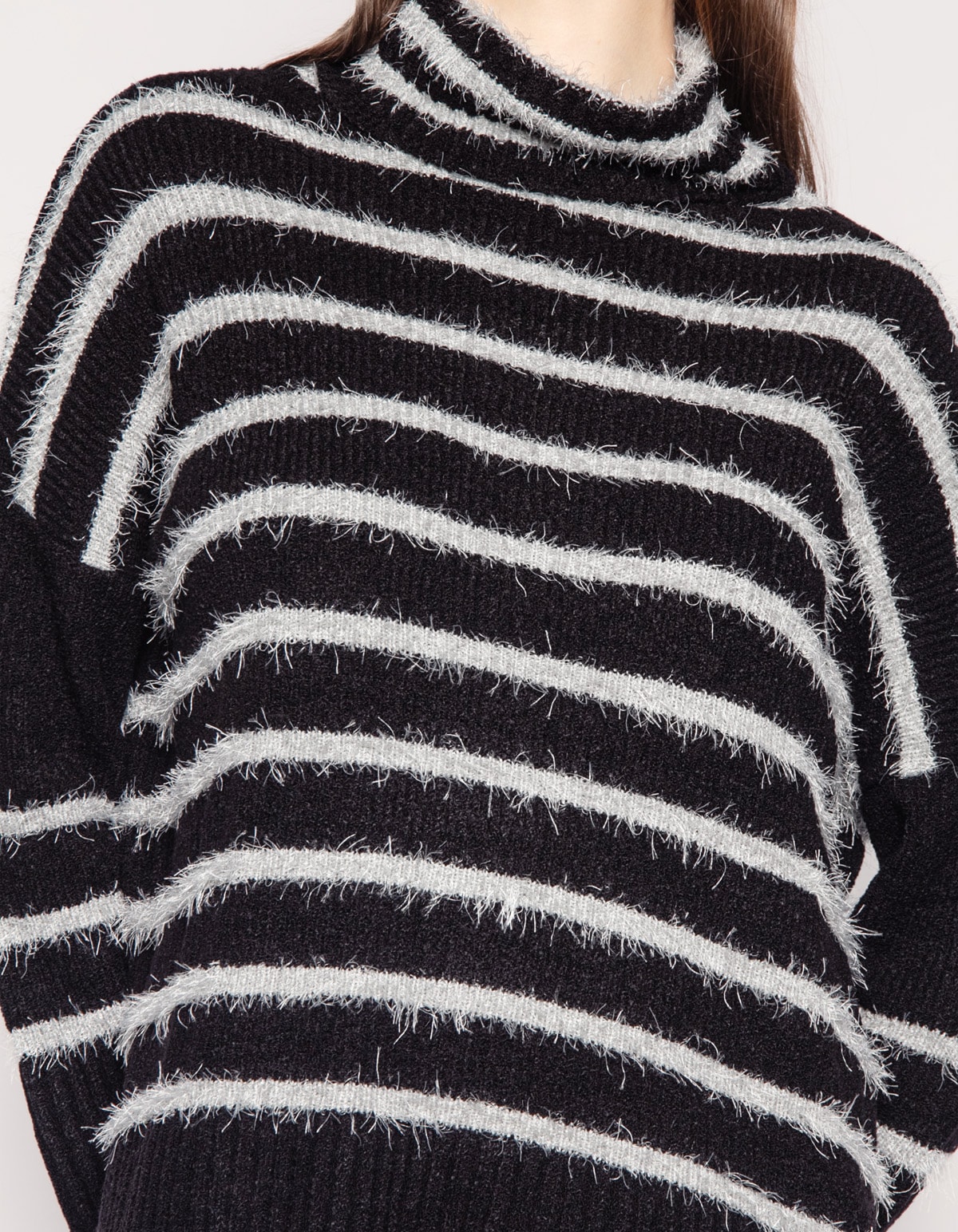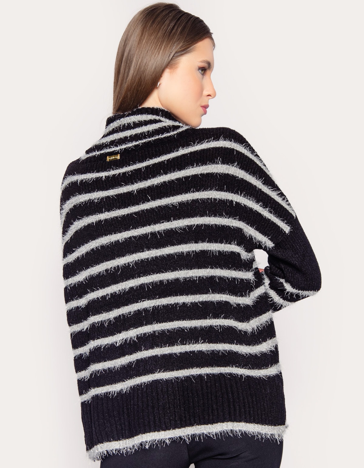 Para curtir os dias frios com muito estilo, a blusa de tricot listrada com pelinho transforma seu look casual em algo sofisticado e confortável, oferecendo um toque macio e delicado à pele.