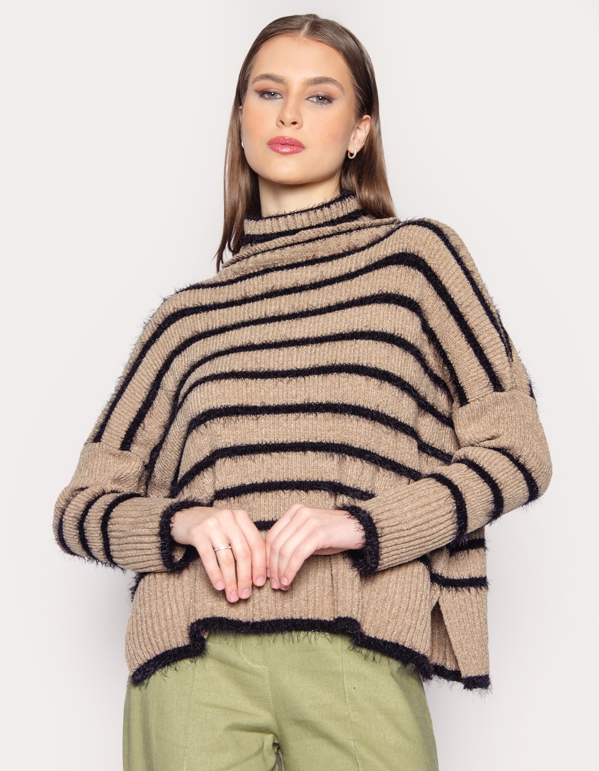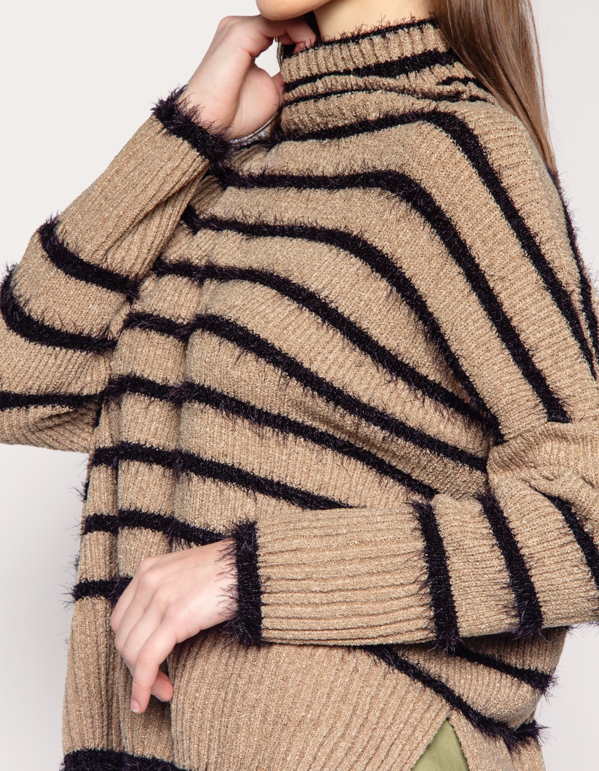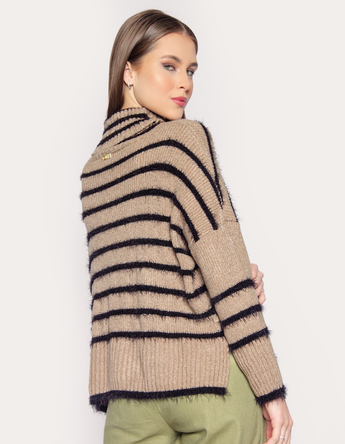 Com mangas longas, gola alta e uma linda textura de pelinhos, é a escolha perfeita para quem busca elegancia e aconchego nas estações mais frias.
